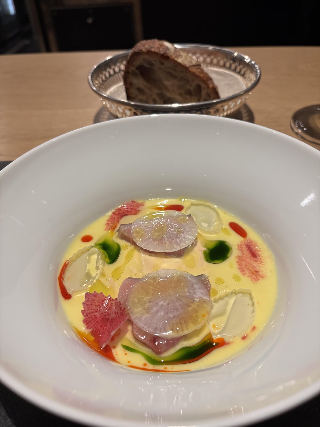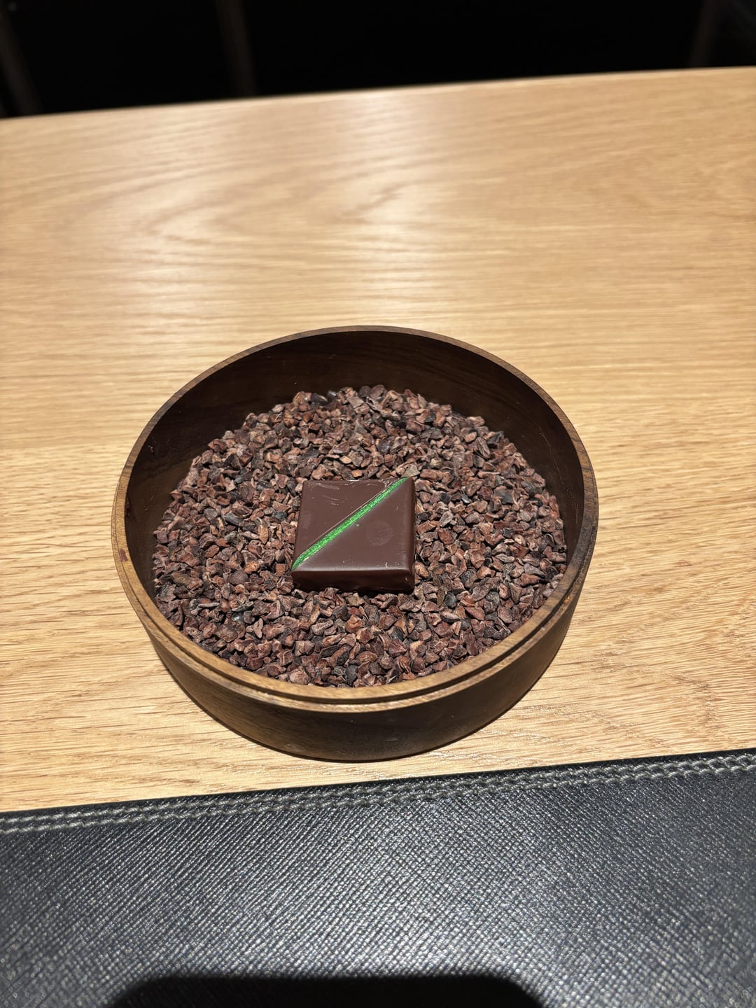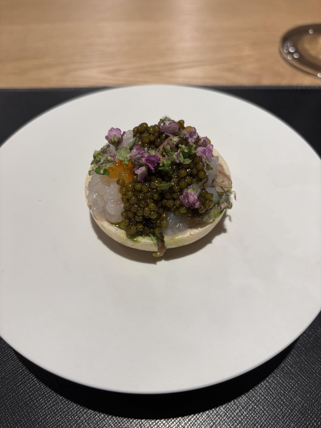 I thought the food ranged from very good to outrageously good. I was surprised by their “signature” dishes (I’ve never eaten at CTBBF) because they were definitely not my favorites, while still delicious. The sea urchin toast was velvety and rich but the Monoka was the bigger standout (it’s hard to compare sea urchin toast after the one at Saison but that monoka changed my entire perspective on how langoustine could taste). Same with the dessert- I guess this one was conka bean as opposed to corn, but it was incredibly disappointing (and while I don’t love Cosme, their corn dessert is amazing so that’s where my expectations were). It just tasted like very cold frozen milk over a bit of delicious chocolate ice cream. I’m not sure why these two are the signatures when there are so many better dishes. Only other nit pick is the bread course- no butter made it tough to eat 3 slices even when I used it to soak up sauces. I love a funky butter bread combo and this felt like an after thought. Either do the bread course fully or get rid of it IMO.