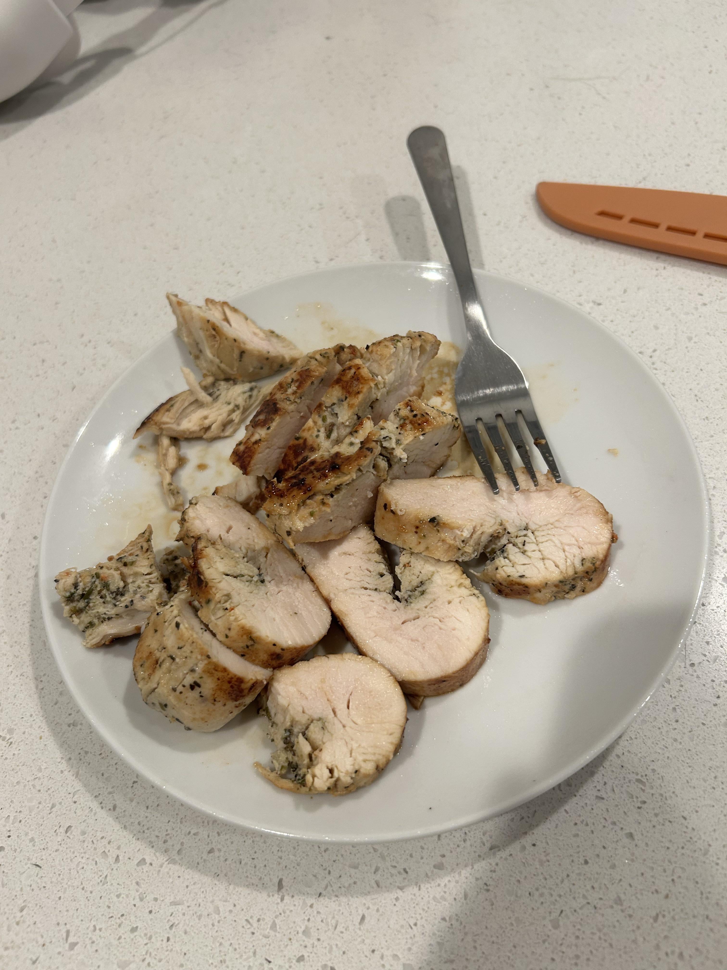 Really trying to improve myself this year. My dad won’t shut up about what he calls the “swirlzydoo” aka sous vide, so I got one for myself. Tried it out tonight with a pre-marinated garlic and herb chicken breast from the grocery store. Cooked it in a ziplock bag at 147 F for 90 minutes. Followed up with a few minute sear in a fry pan and olive oil, where I learned I should have patted the chicken dry before searing, as the spatter was INTENSE.