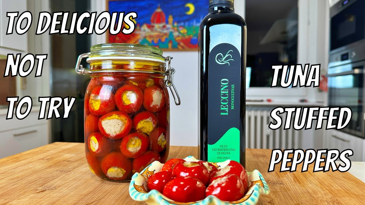 This dish form the southern region of Calabria uses the little round mildly chilli peppers which is both sweet and spicy. The peppers are cooked in vinegar, wine and water, then stuffed with a delicious mix of tuna, capers and anchovies. This is a fun and delicious way to use tuna in a recipe you probably never tasted! These are great to serve in an aperitivo or as snack…i also love to crush them on a toasted sourdough bread…how ever you eat them, you will fall in love with this little pepper and tuna treat! So what are you waiting for…go Get Cooking!