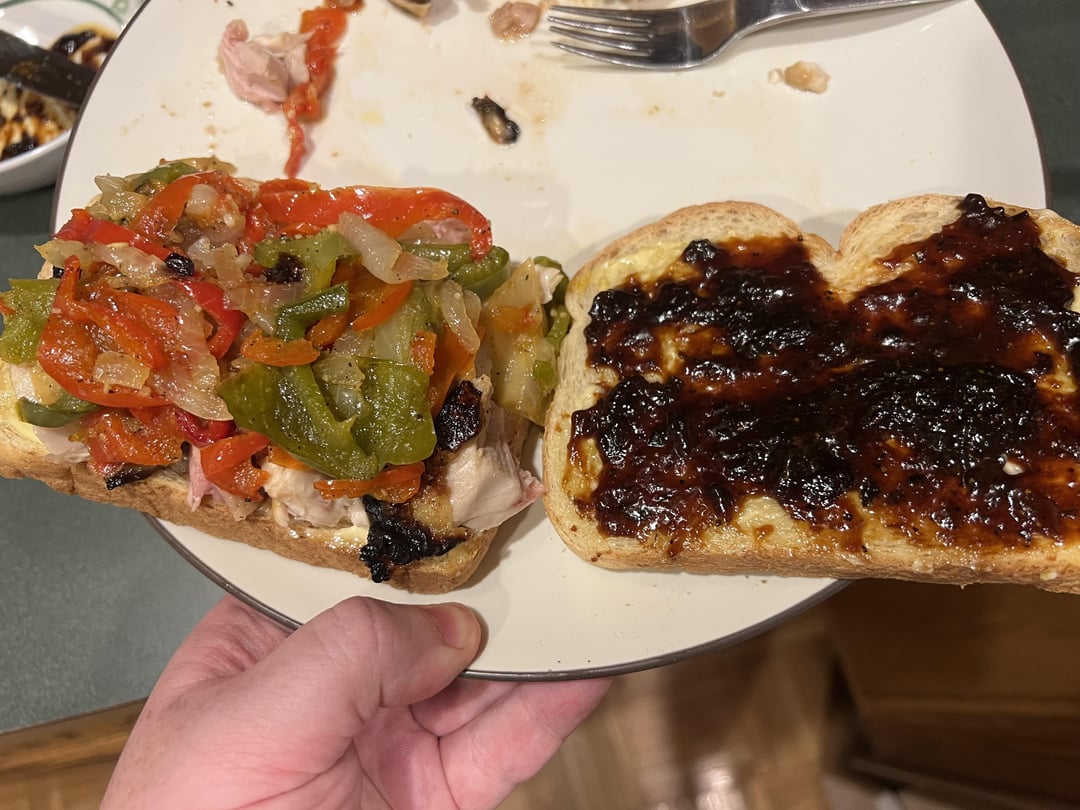 Chicken thigh/ onions & peppers/ leftover marinade reduced into sauce by ethan0077 1 Comment NachoNachoDan 10 months ago I hope that chicken is more cooked than the pic makes it lookWrite A CommentYou must be logged in to post a comment.