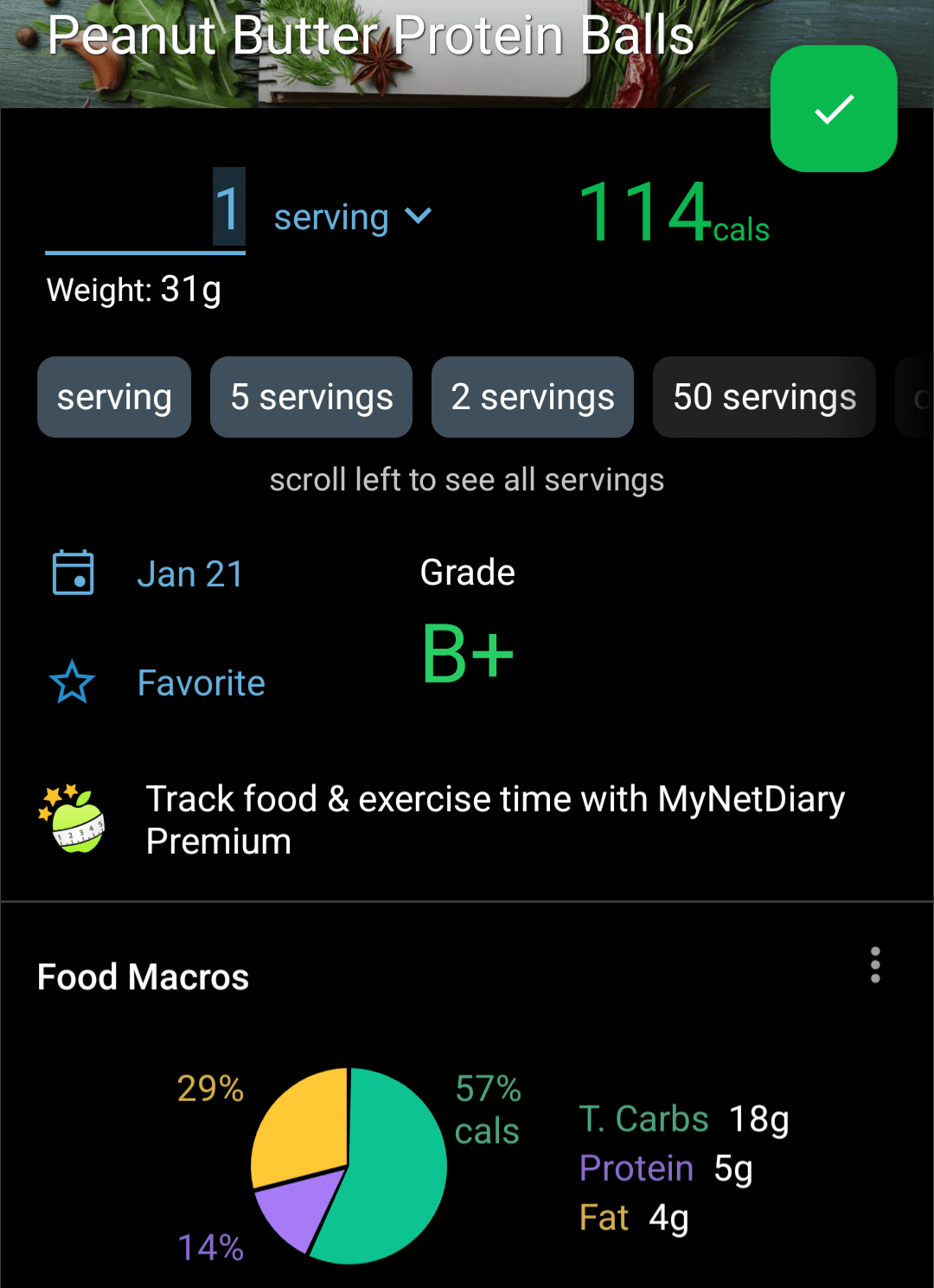 I haven’t been able to fit protein powder into my calorie plan with the snacking, so I made protein balls (ingredients and macros in pics).
