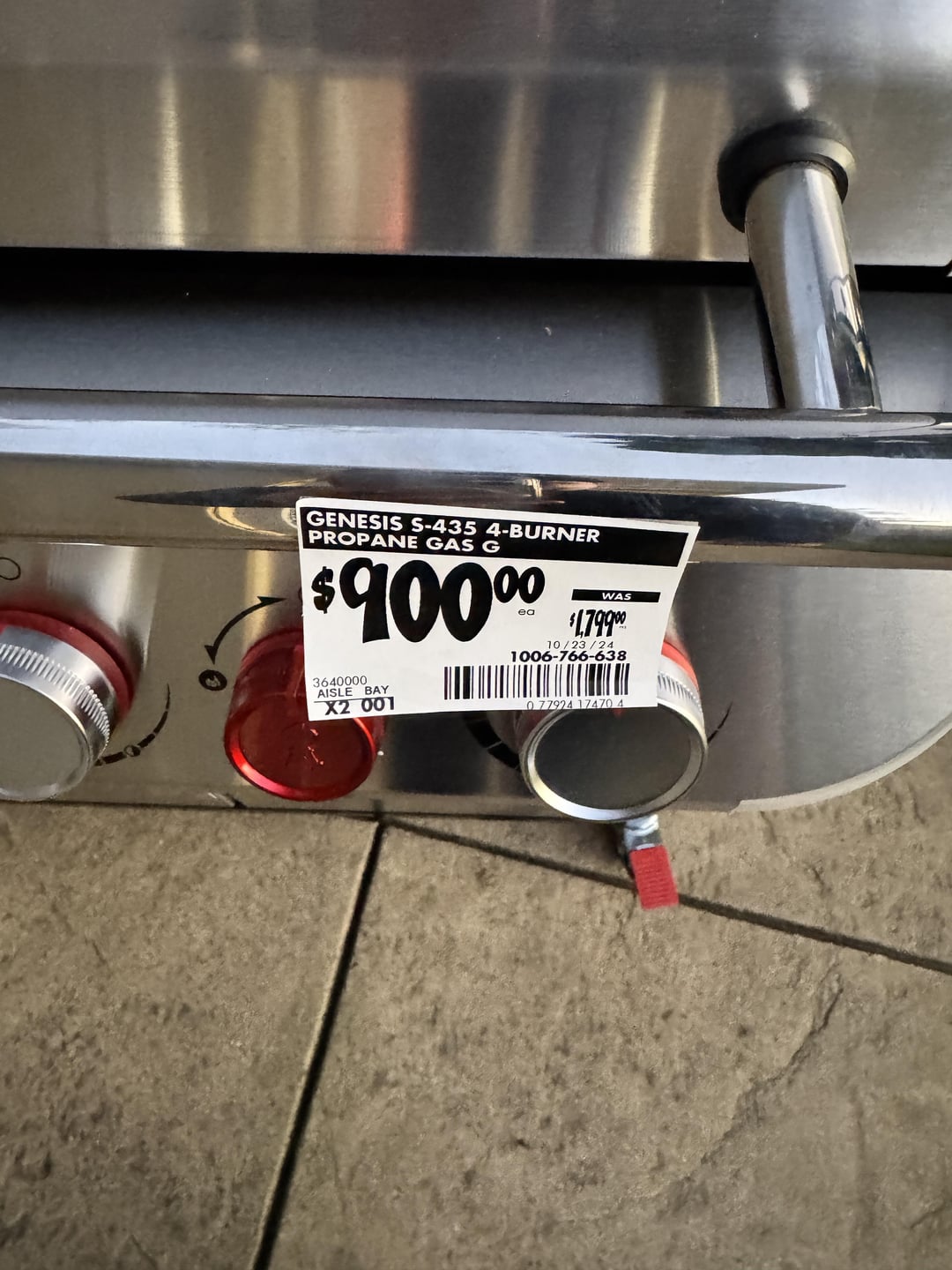 I was all set to buy a Genesis S-335 from Home Depot for $1,034. But right as I approached the store entrance, I spotted an S-435 model tagged at only $900. I was stunned. I immediately went to customer service and told them I wanted it. I asked if it was a returned item, and the employee said, "I handle returns, this isn't returned."