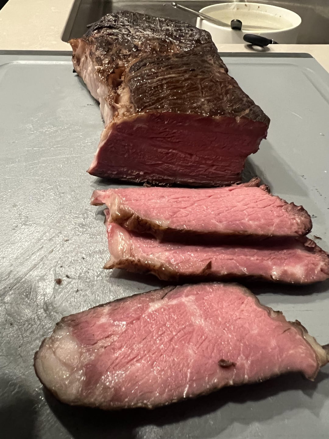 $6/lb choice Chuck roast on sale makes for an easy meal prep for lunch together w some eggs24 hr salt brine 31 hours at 137 Sear w a torch Sliced when fully cooled down by Smokin_Barrels 2 Comments computereng1 1 year ago Looks great. Was the fat rendered well at that time and temp? fuelfrog 1 year ago Wow, that’s a beauty, seen many posted before, but this takes the cakeWrite A CommentYou must be logged in to post a comment.
