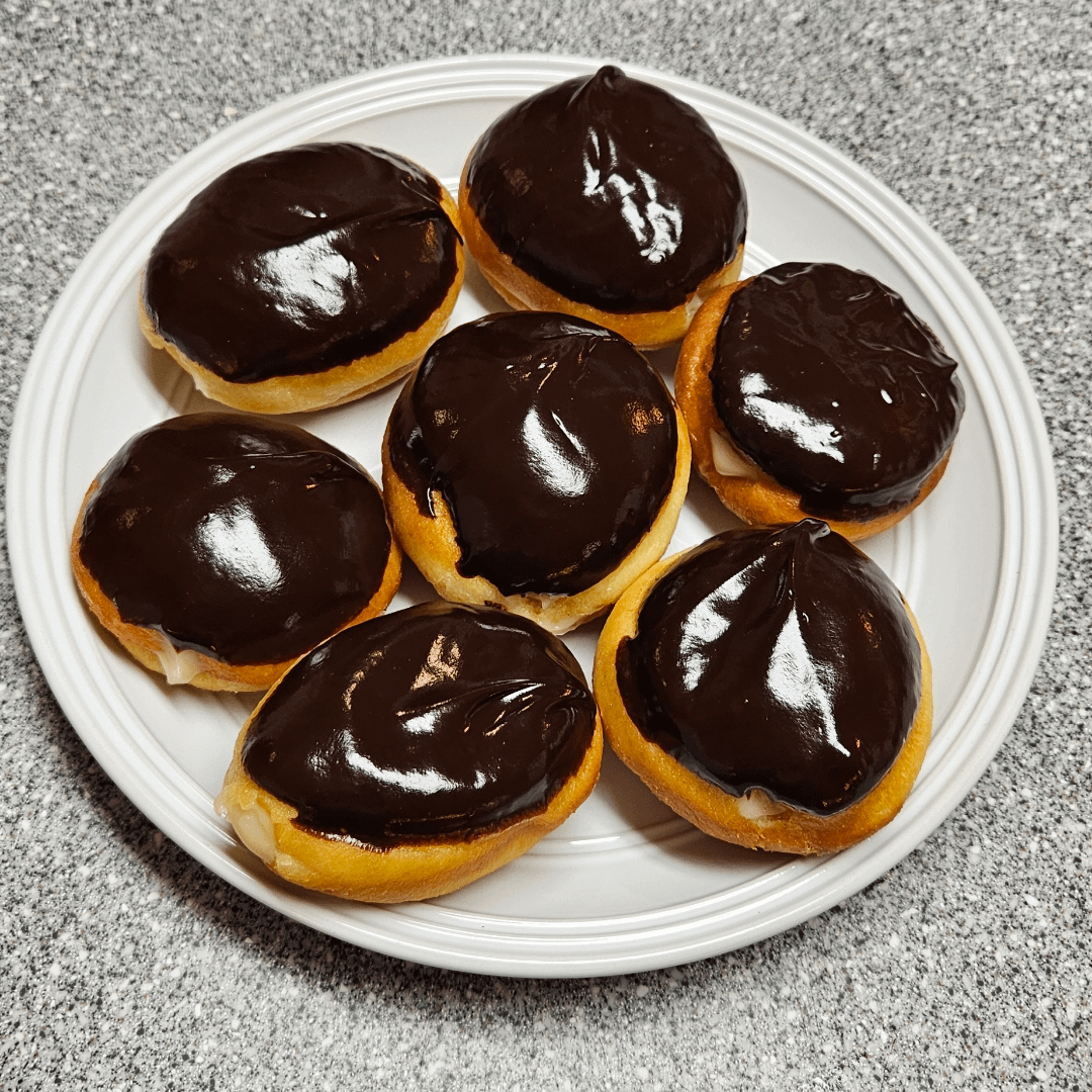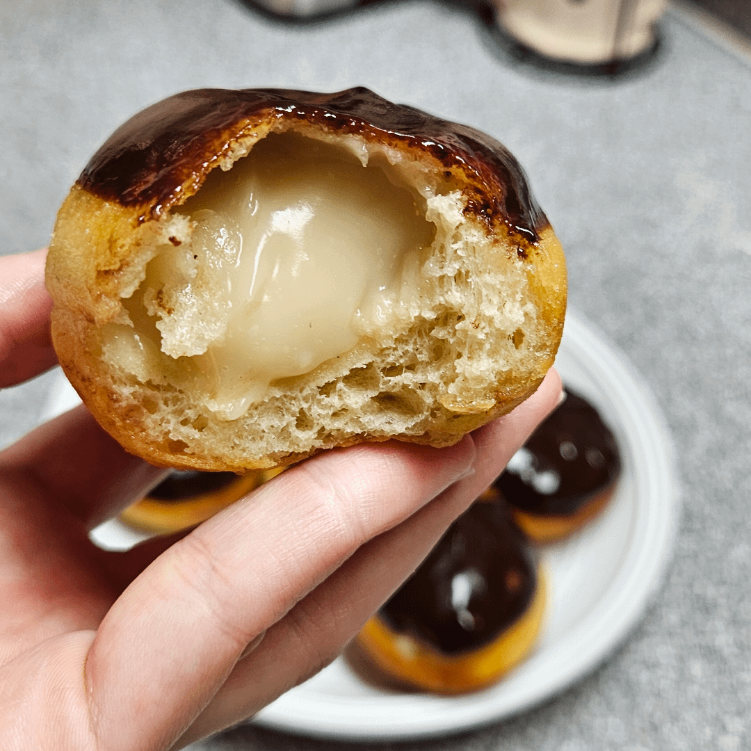 Dough, custard, and chocolate glaze from Nora Cooks: