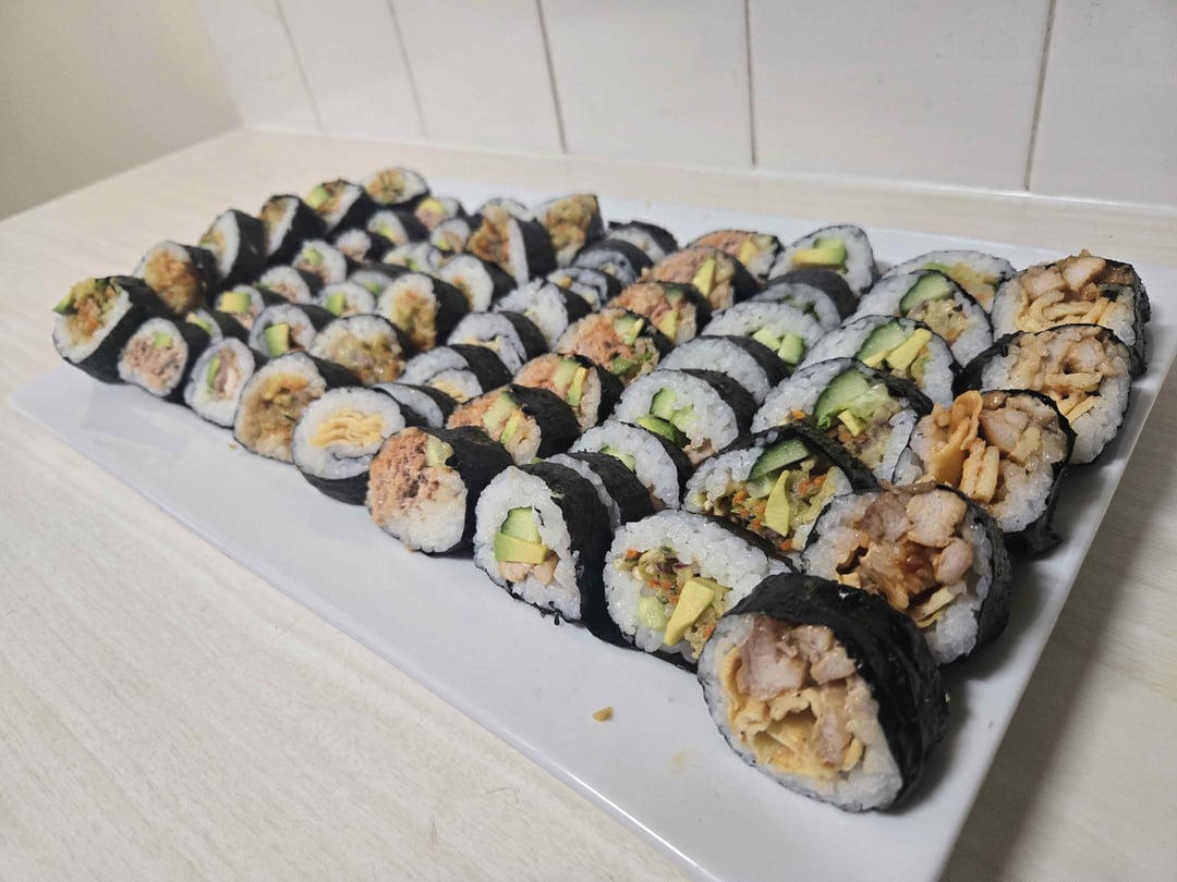 I spent all day cooking this homemade sushi platter, and wasted 6 cups of rice due to a bad recipe. Amateur home cooking and non-traditional fillings FTW.