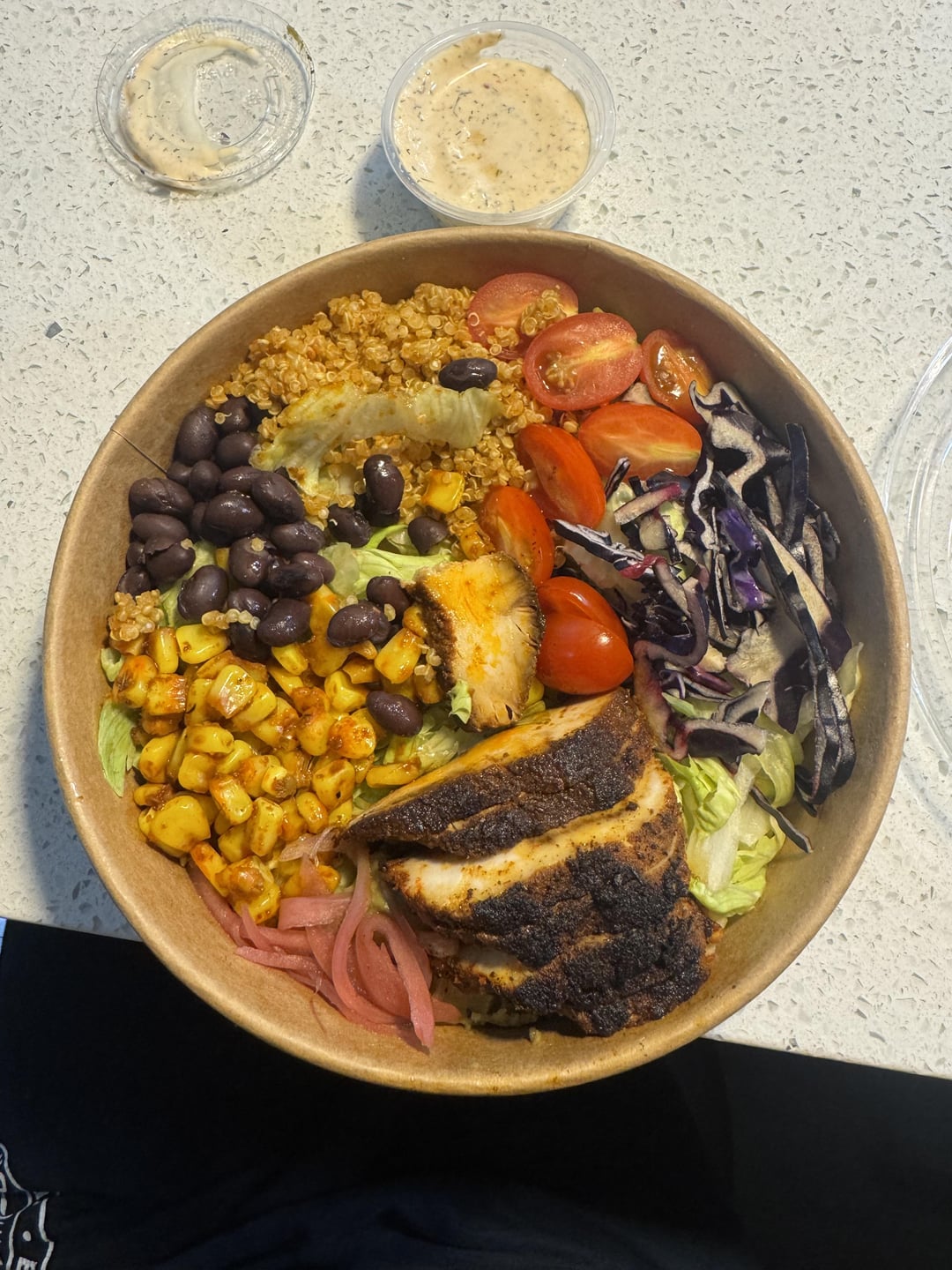 pls help how many calories in this bowl??by Critical-Fun7098 1 Comment StrangeAir6637 1 year ago my guess is around 800-900 because of the quinoa, dressing and large sizeWrite A CommentYou must be logged in to post a comment.