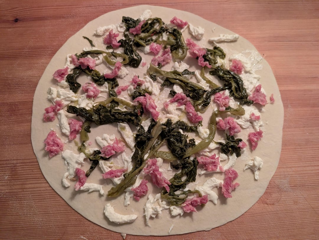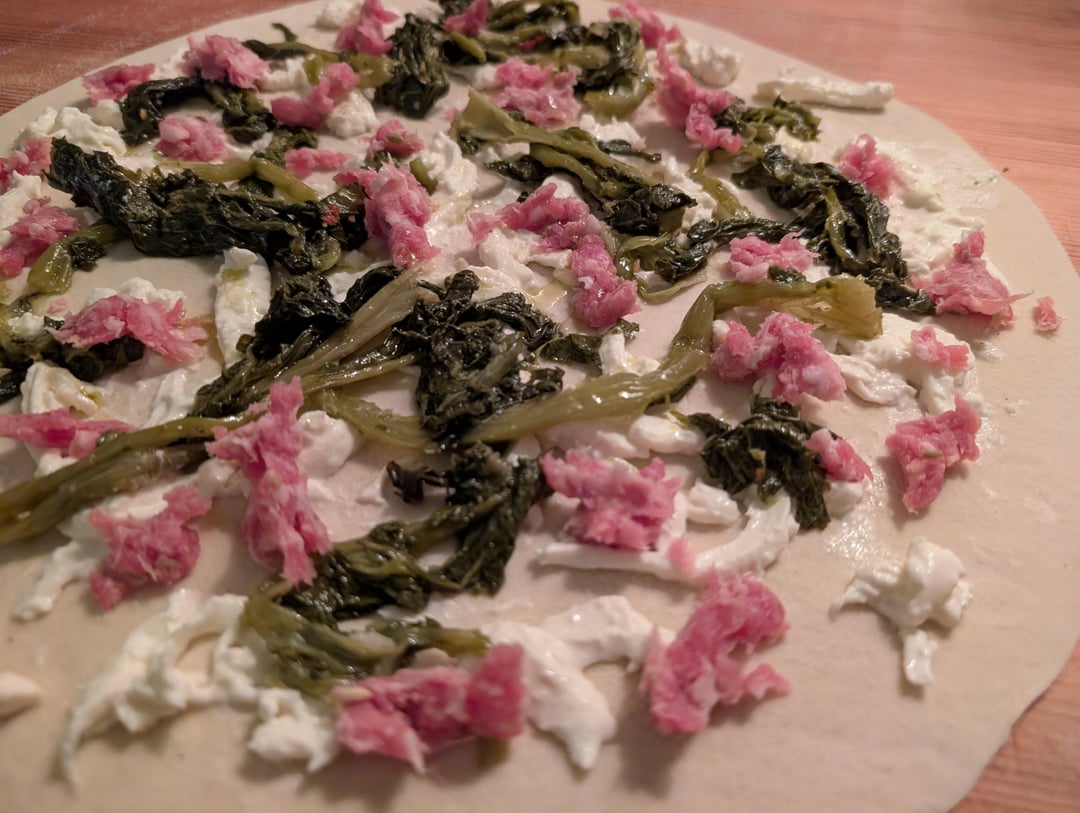Scrocchiarella romana with fennel sausage and broccoli raab (friarielli).