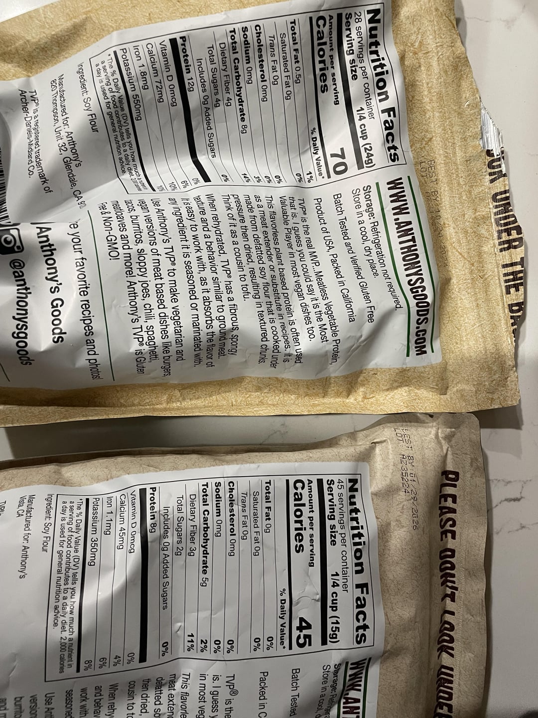 How did the calories and 1/4 cup completely change for this TVP brand? (Left is older bag, right is new)- how do I log it?