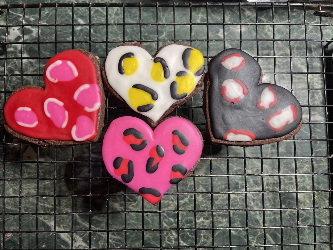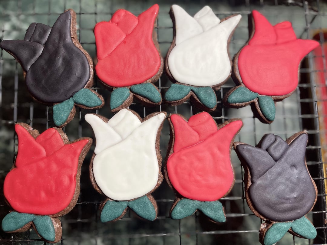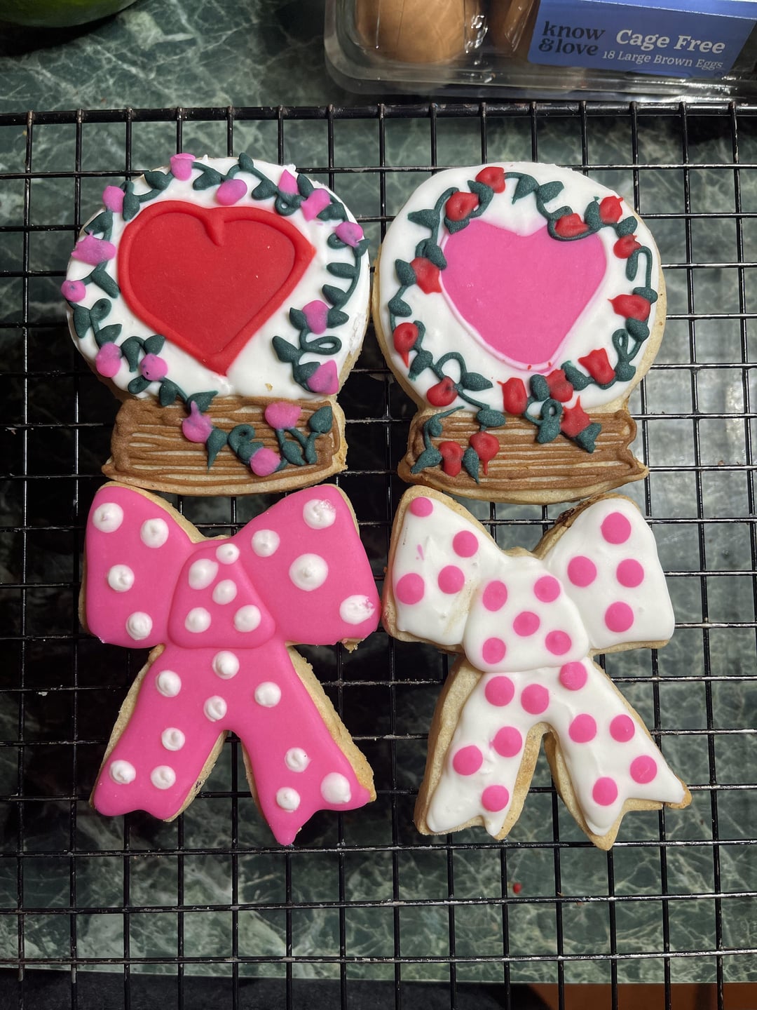 These are some more homemade practice cookies. Dark chocolate peppermint cookies with butter flavored royal icing. Thinking of outlining the roses and ‘Love’ cookies. We’ll see how the day goes. Having fun and hopefully getting better. Always nervous to post because everyone is soooo good and creative. However I’m so open to critique as well and good advice to become my best. Thank you.
