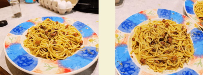 Made some carbonara. Ended up using pancetta because I couldn’t get my hands on guanciale. Thoughts?