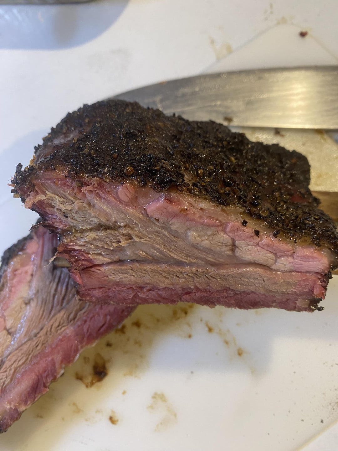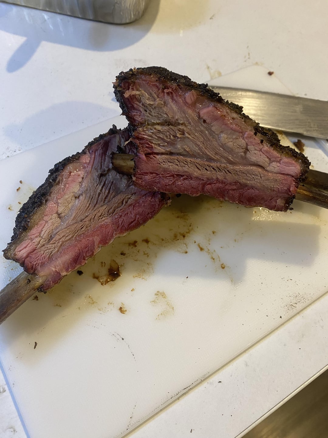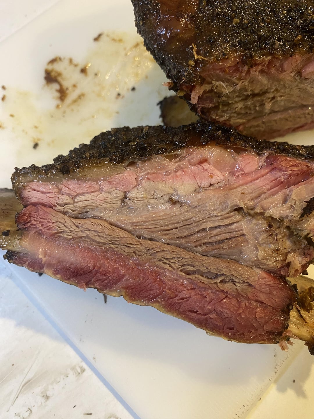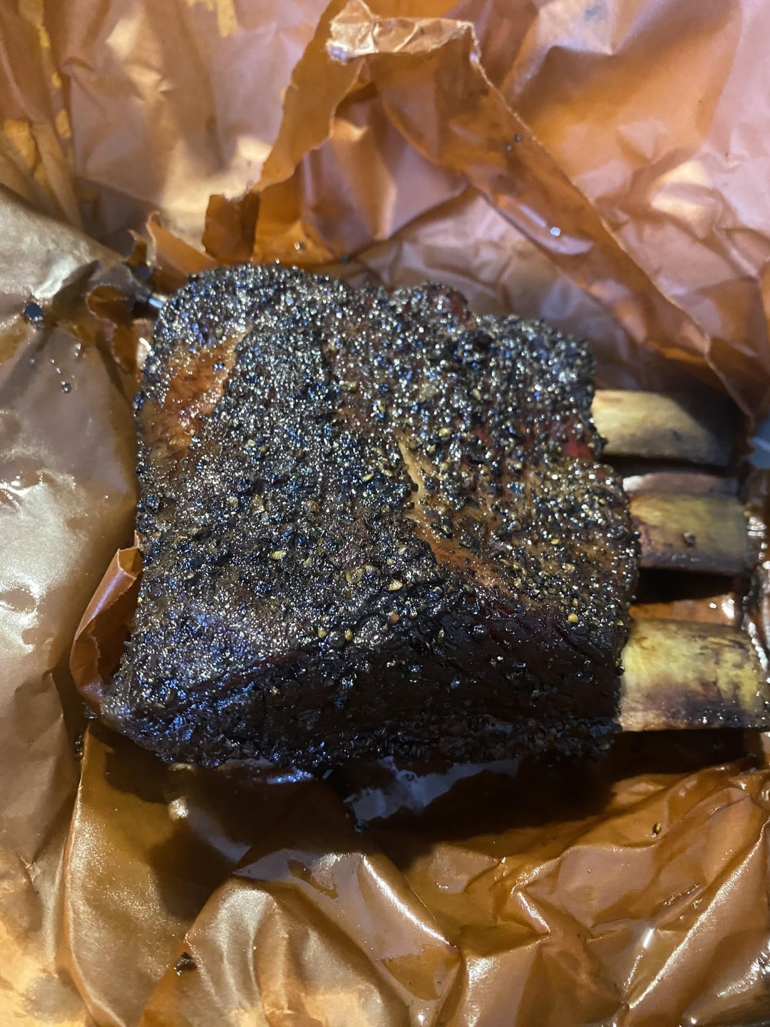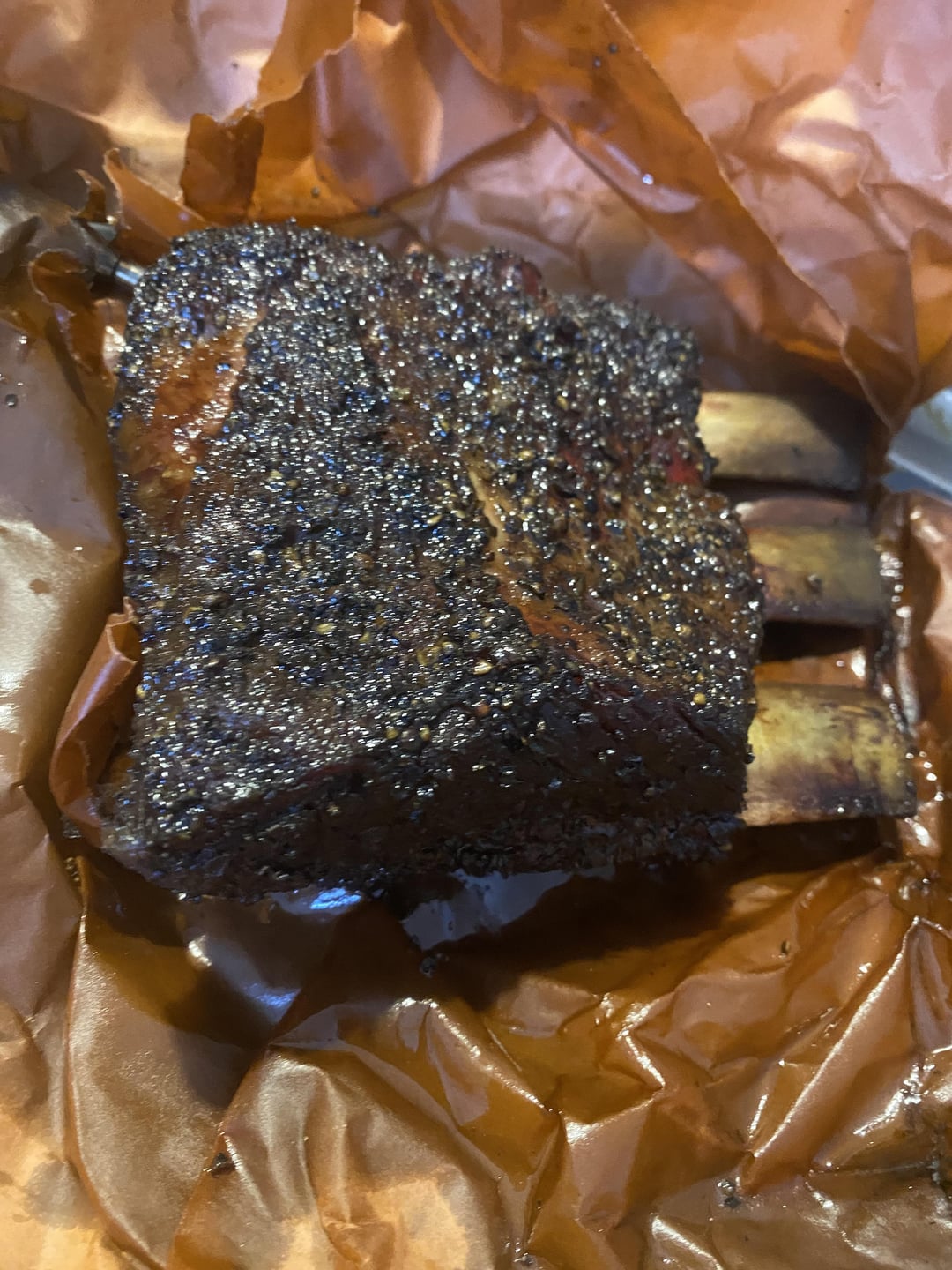 First time cooking beef ribs in off set smoker and not too bad, very tender and tasty but could have been more tender and juicy over all.