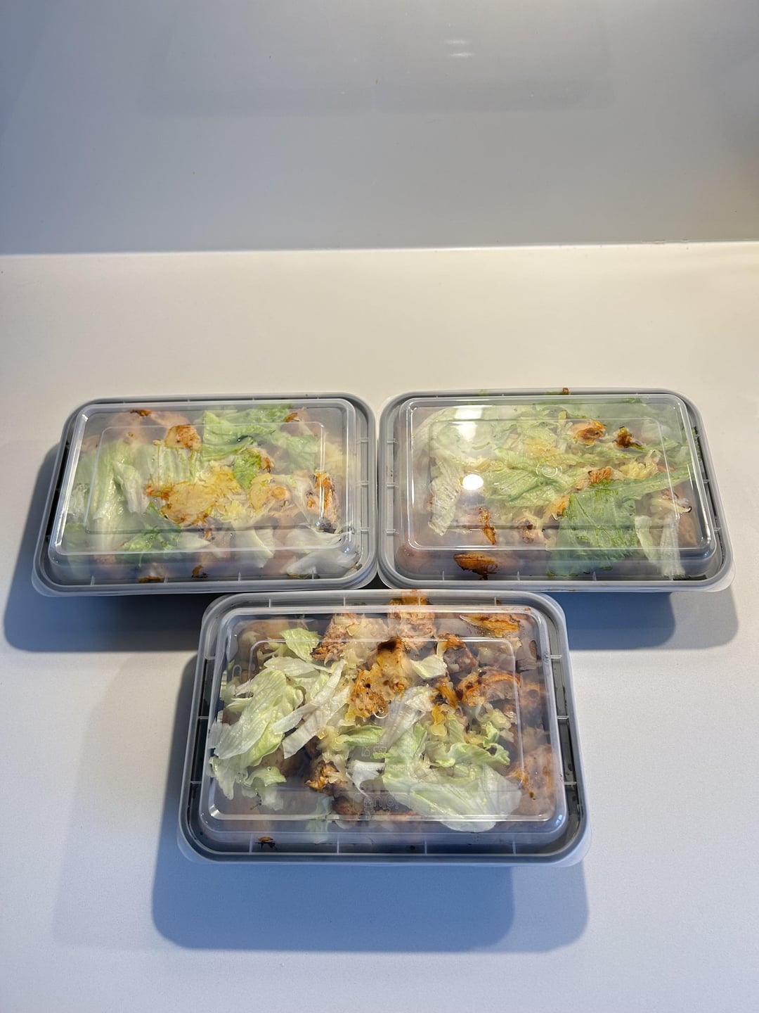 Prepped for three days of Chipotle chicken & potato bowls, about 900-950 cals and 90g protein.Chicken breast well seasoned and with chipotle pastePotatoesShredded cheddarLoaded with sour cream and bbq sauceby 99oh 3 Comments ttrockwood 9 months ago Is it like a half pound of chickenβ¦?You might need, um, an epic serving of wilted spinach per day there too. Just to, keep your innards happy alice_austen 9 months ago Kudos for making bulking meals actually appetizing!! Iβm used to the 1lb of ground beef over steamed broccoli and white rice my husband eats. Smooth_Wallaby2533 9 months ago yummmmWrite A CommentYou must be logged in to post a comment.
