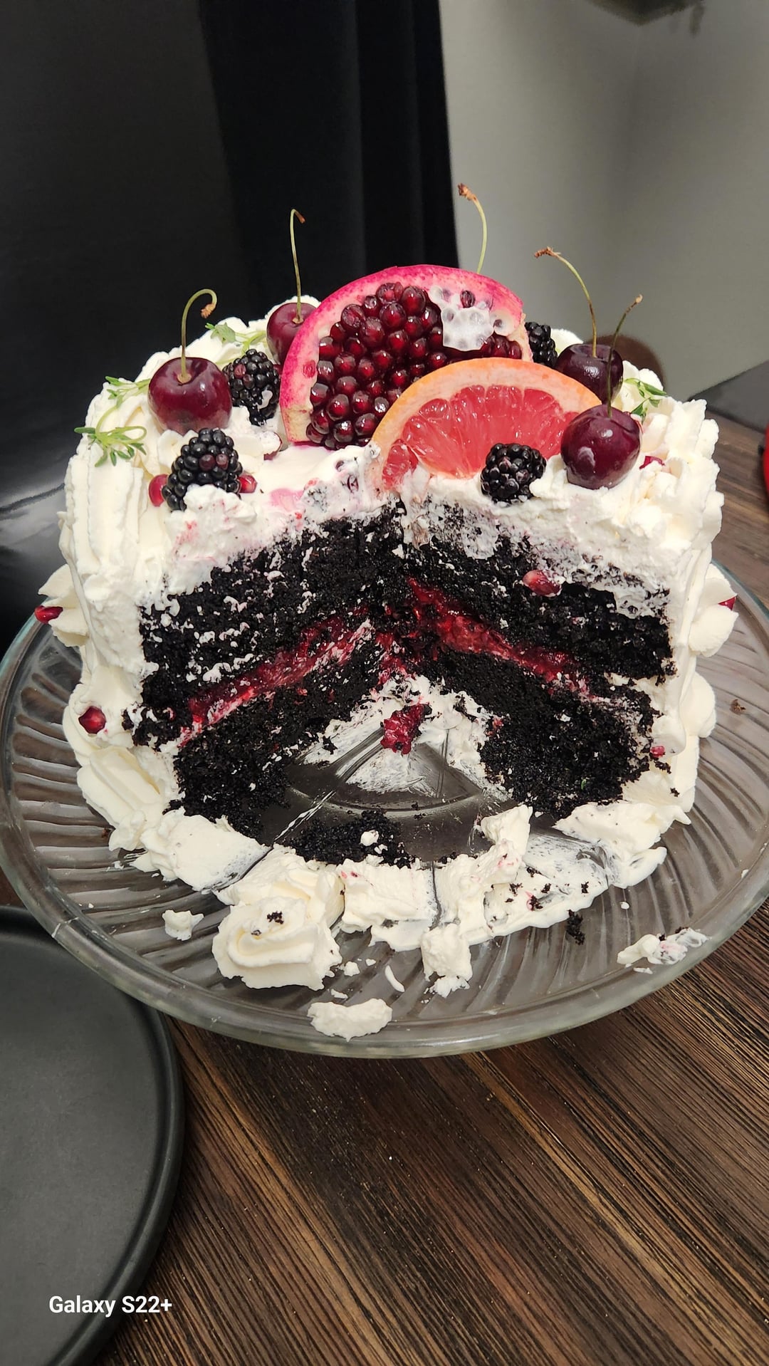 Looks gorgeous AND delicious!! The pomegranate is such an elegant touch. And I’ve never had blackberry filling with chocolate cake- I bet it was to die for! Happy birthday to you (or the lucky person who received this)!