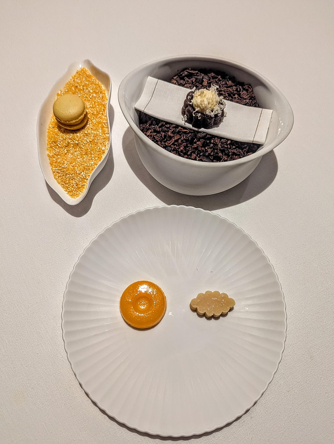Firstly, the standout. The moqueca, which is a Brazilian stew (the iteration presented at Da Terra is the Bahian regional variety), was joyous. Everything that Da Terra had done well up to thus point (sauces, composition, rounded seasoning) was in evidence in this dish, as well as – vitally – spice. Chillies native to Brazil were given on the side, with the option to crush them in yourself with the sauce. I really think they should make having one of these in the sauce mandatory, as just one (which is around 3 times the heat of a jalapeño, but with a pronounced pickly flavour that somewhat offsets the heat) brings so much to the dish. We simply don't see enough spice at this level of dining.