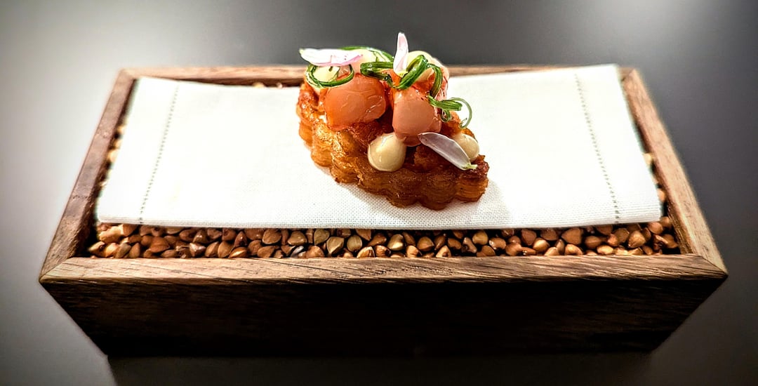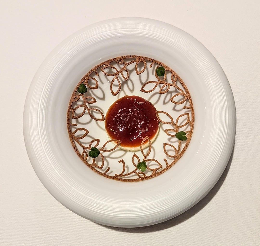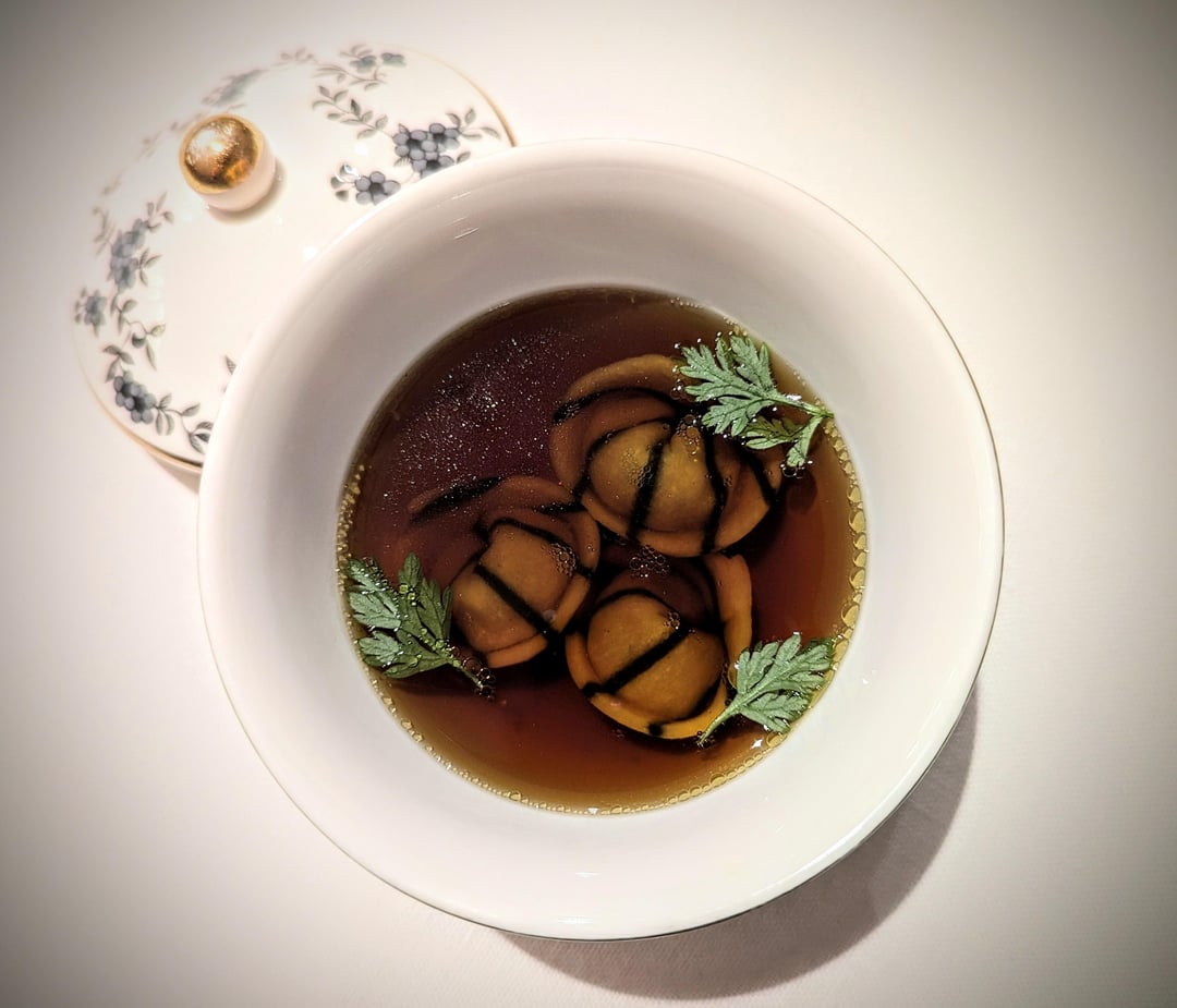 After these snacks (which were served at a brisk pace), I was ushered through to the dining room. What is marked as a three hour dining experience was condensed to 1.5 hours, due to both being a solo diner and enjoying a brisk pace to a meal, and this didn't seem to cause any issue for the kitchen. The meal – outside of the snacks and petits-fours – consisted of five savoury courses and three sweet courses. Every one of these courses had at least one exemplary element. The hamachi was beautiful, the pear reduction fragrant and slightly sweet to ease delicately into the meal. The tortellini – perfectly toothsome, being al dente – was elevated by the robust quail consommé. The romeo & juliette (goat's cheese and guava) was truly a marriage, delicously creamy and an apt transition from the savoury courses.