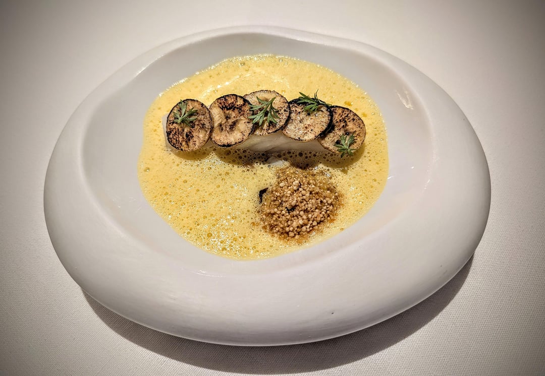 8. Moqueca, Aged Turbot, Manteiguinha Beans, Farofa (pictured first)