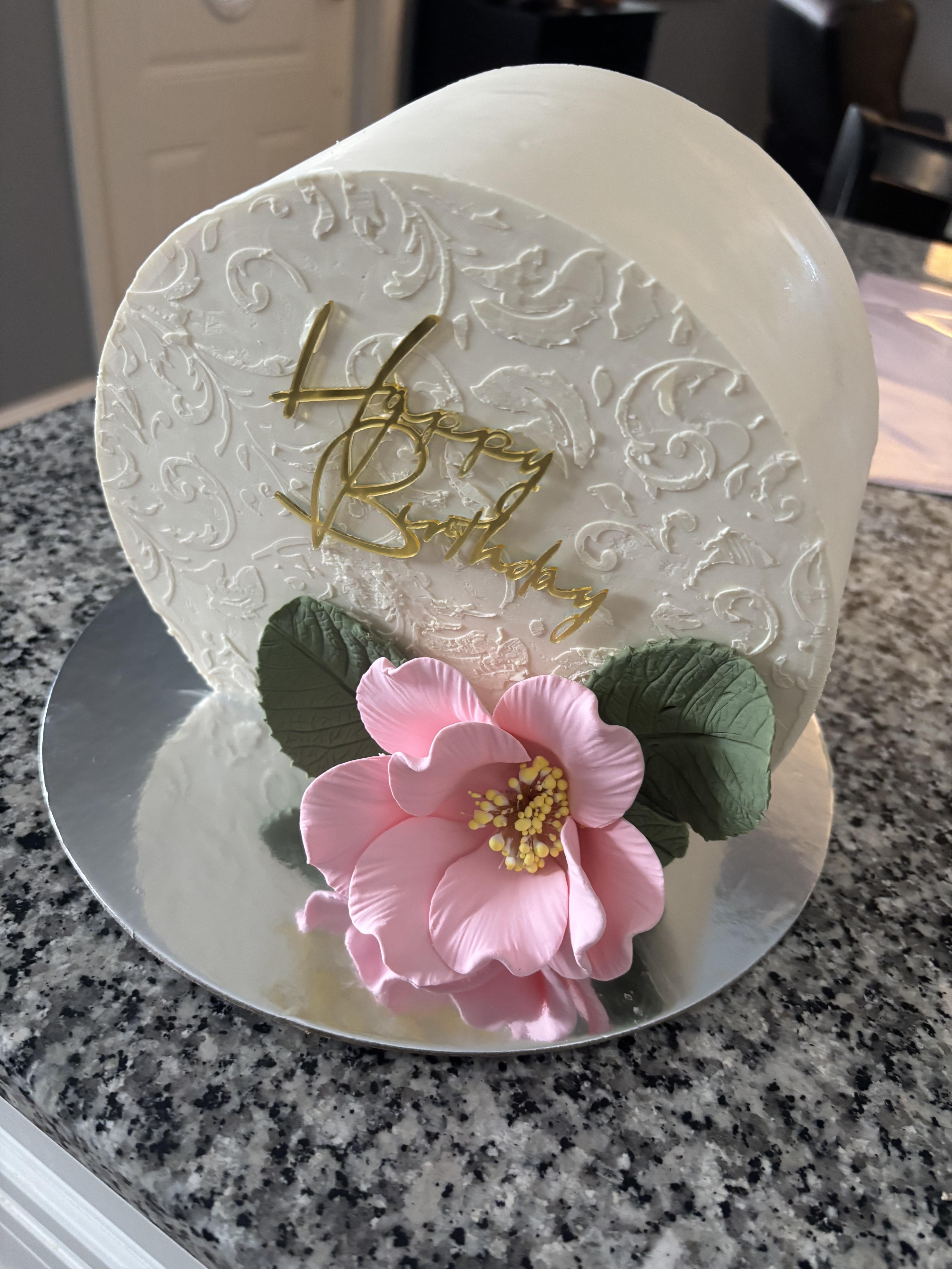 When you know exactly what you want, you create your own cake 💕. Dark chocolate cake, espresso buttercream, white chocolate ganache decorated with gumpaste flowers and leaves.