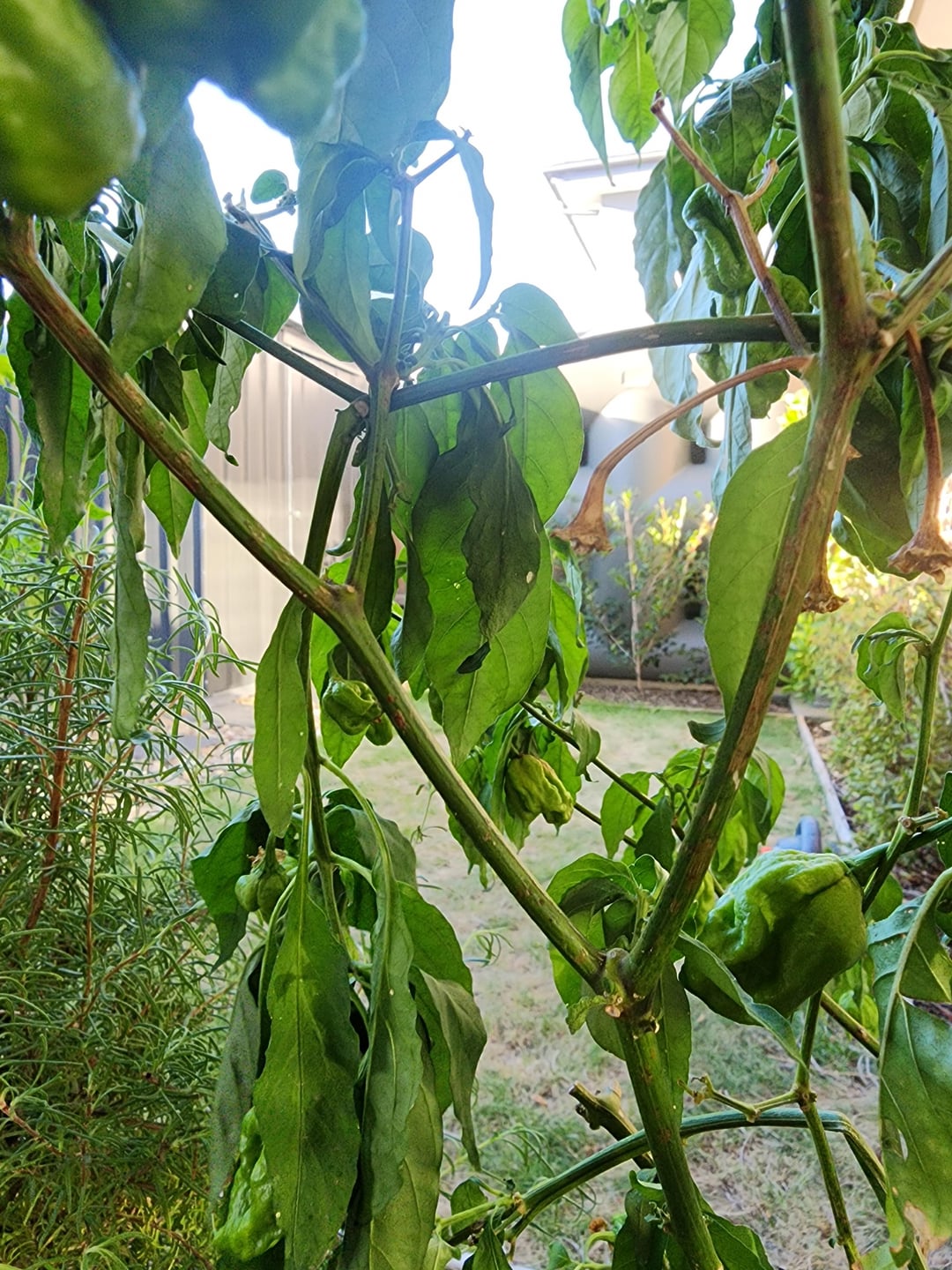 I usually torture my pepper plants, I let the leaves look like this then water, but I dont water until the leaves look like this. There’s a theory that stressing the plant makes the peppers hotter.. not sure if it’s true or not, and as far as I know hasn’t significantly affected the yields of the plant.