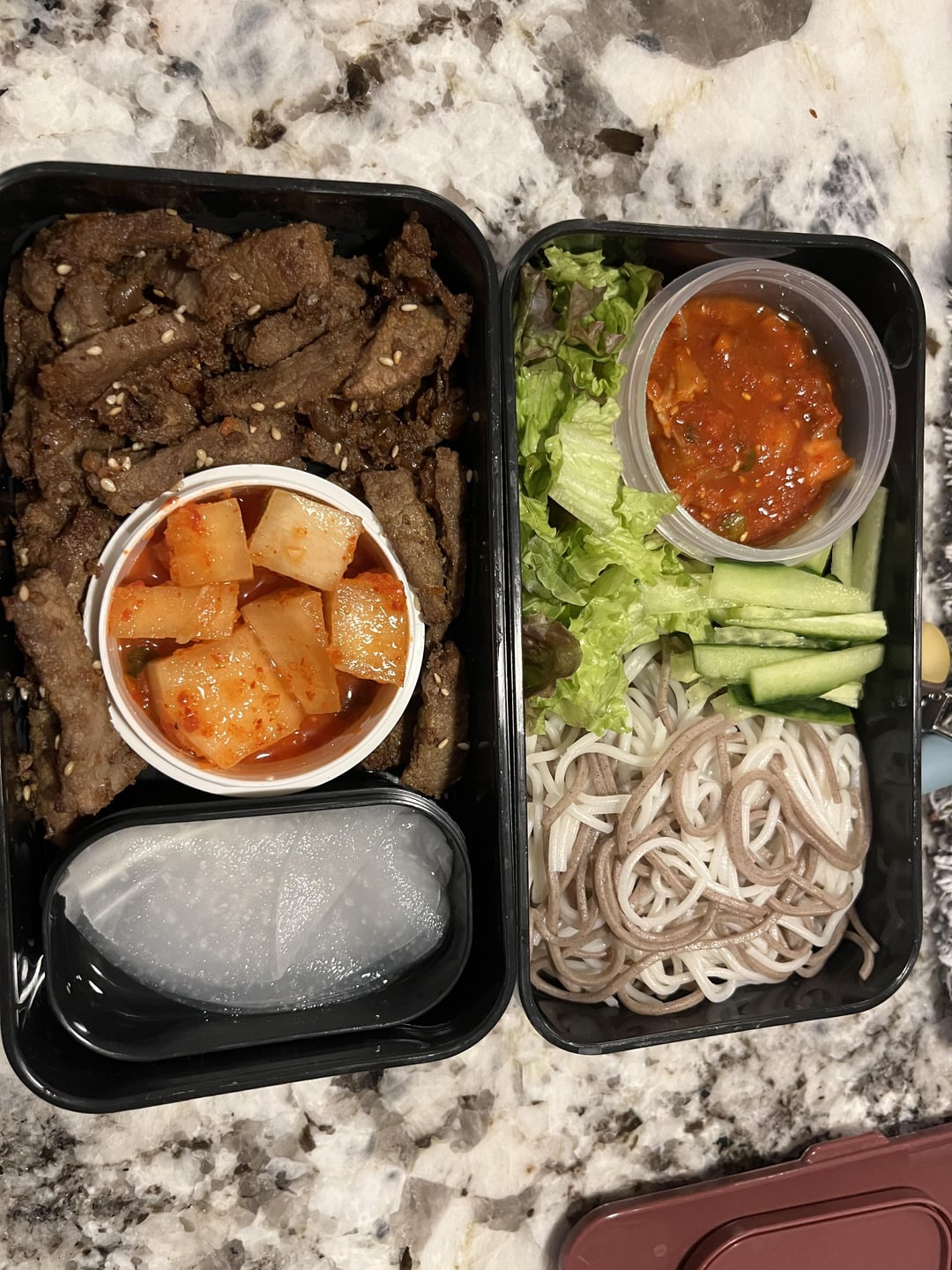 6. 불고기 & 비빔면 (bulgogi and cold kimchi noodles): I packed this for lunch and it was delicious. The meat was so savory and went perfectly with the tangy noodles.