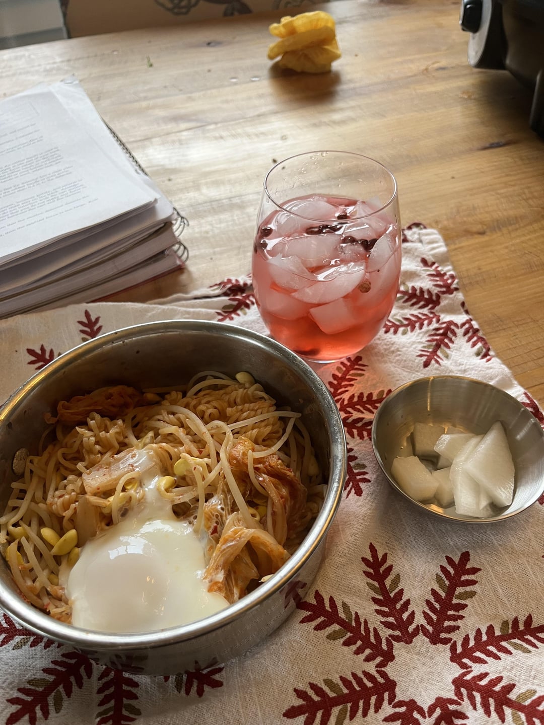 7. Obligatory ramyeon photo (given half my lunches are some variation, it just wouldn’t feel complete without one), this had kimchi, egg, and soybean sprouts. On the side is pickled radish and omija cha. The whole meal is a perfect balance of sweet, spicy, and sour.