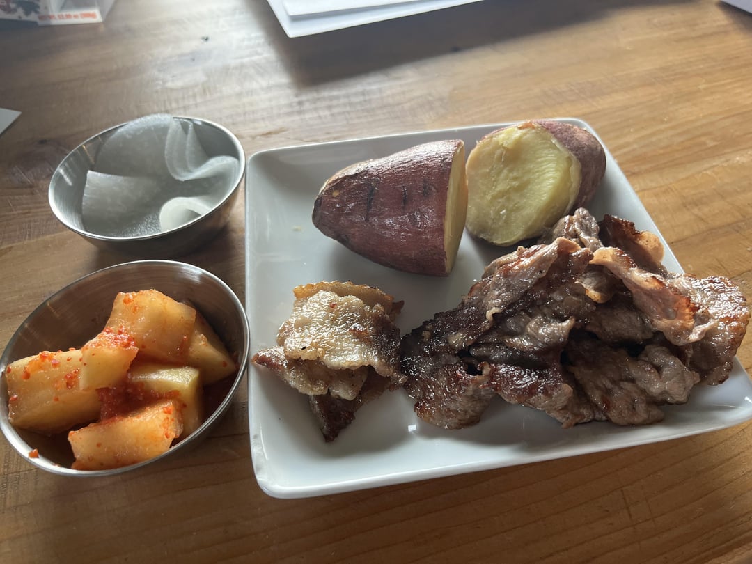 2. Goguma (roasted sweet potato) and grilled meat (brisket and pork belly). If you guys haven’t tried sweet potato with grilled meat before, you must. It’s so so delicious (and feels a bit healthier than rice).