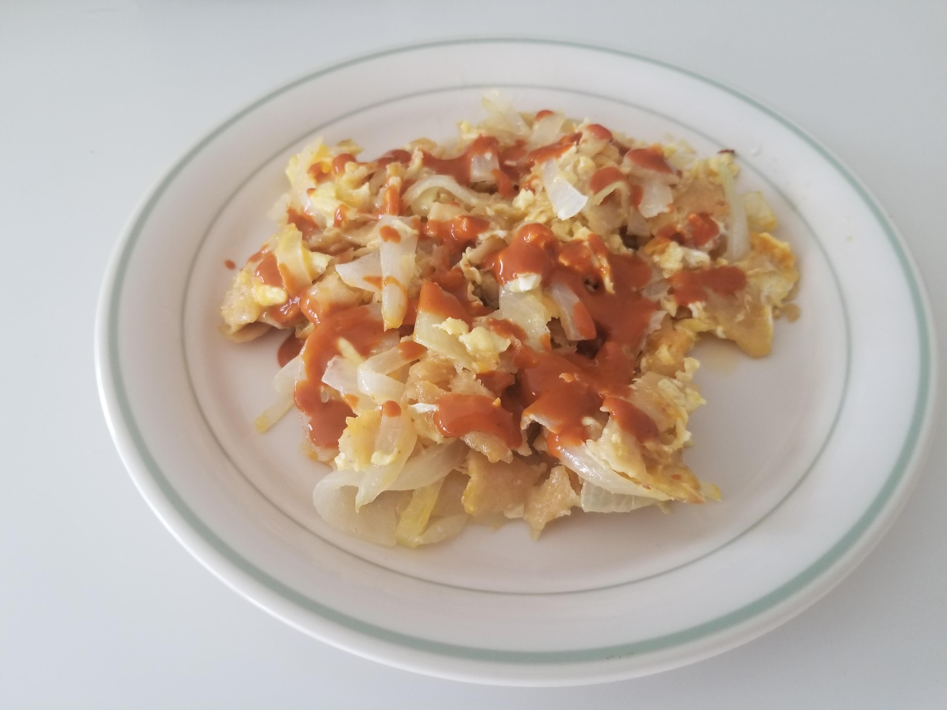 Migas made with onions and topped with Valentina Black label hot sauce by jcarreraj Write A CommentYou must be logged in to post a comment.