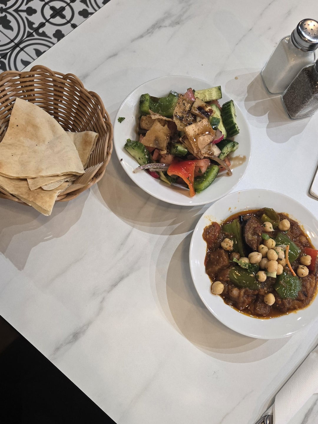 1st pic: 3 quarters of pita, fattoush salad, eggplant musaga 2cd pic: sfouf cakes, weren't very sweet by Forward_Jaguar9046 Write A CommentYou must be logged in to post a comment.