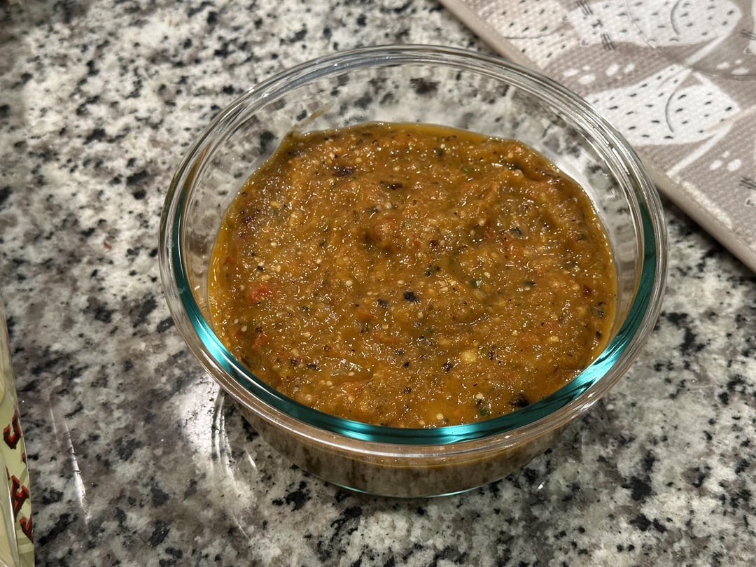 5 Roma tomatoes2 jalapeños7 small tomatillos1 white onion4 garlic cloves1 teaspoon chicken bouillonPinch each of salt and cuminKept the garlic raw since I like the bite it has compared to the sweetness of roasted garlic.by arbrebiere 3 Comments triangulum33 1 year ago ….and how was the chicken bouillon??? JKRubi 1 year ago I use it a lot. Knorr Suiza is great No_Mention_1760 1 year ago I keep forgetting to use bouillon in my salsa! 😂. Maybe next time..Write A CommentYou must be logged in to post a comment.