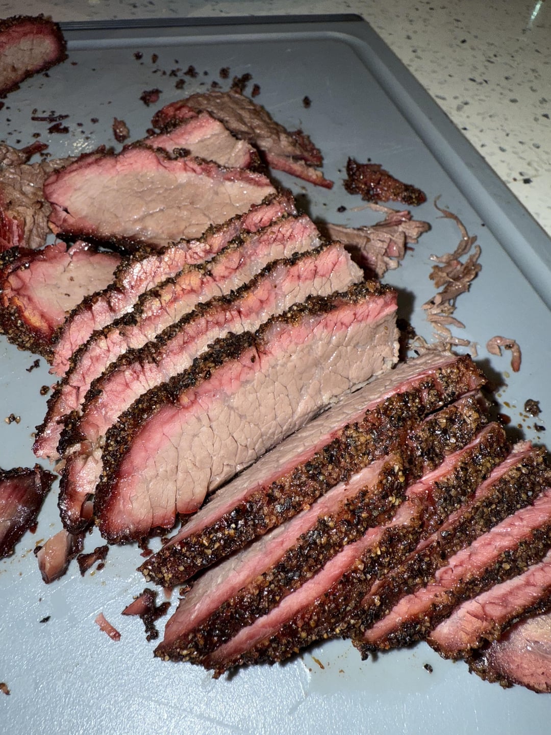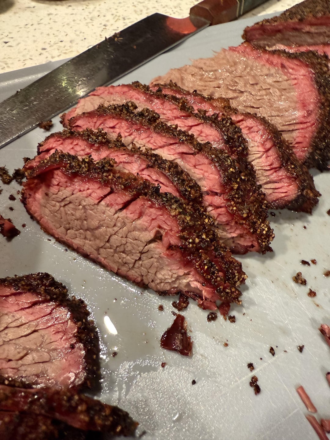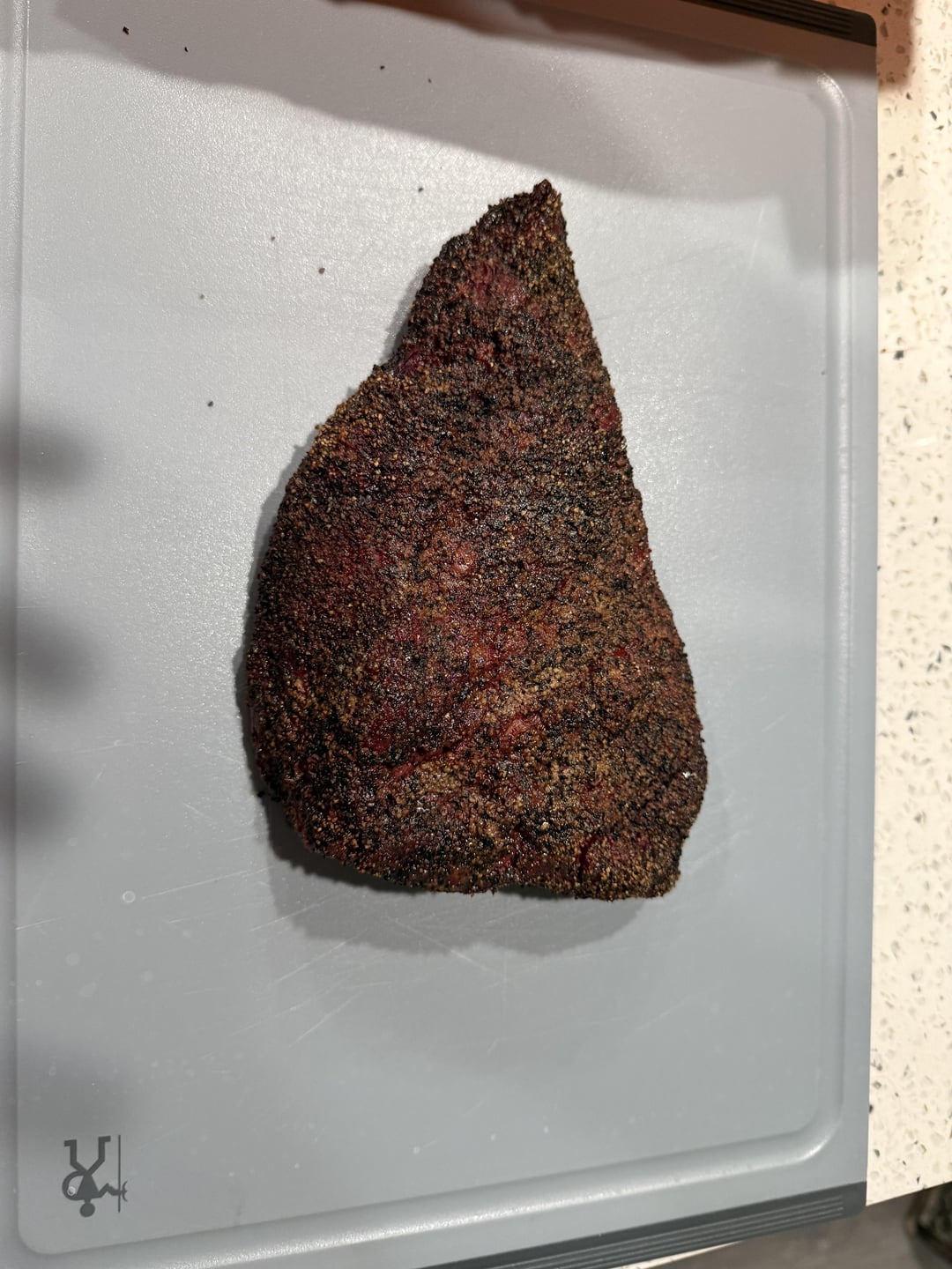 Always kind of thought this was silly as I typically just reverse sear a Tri Tip but I was curious to take it to 203 brisket style. Honestly, quite good and took zero effort (no trimming or anything) and only about 5 hour cook. Salt pepper garlic 260 deg b&b lump with a few little mesquite chips. Wrapped with some tallow for the last hour and a half. Quick 45 min rest and I was eating something that tasted like brisket 🤷♂️
