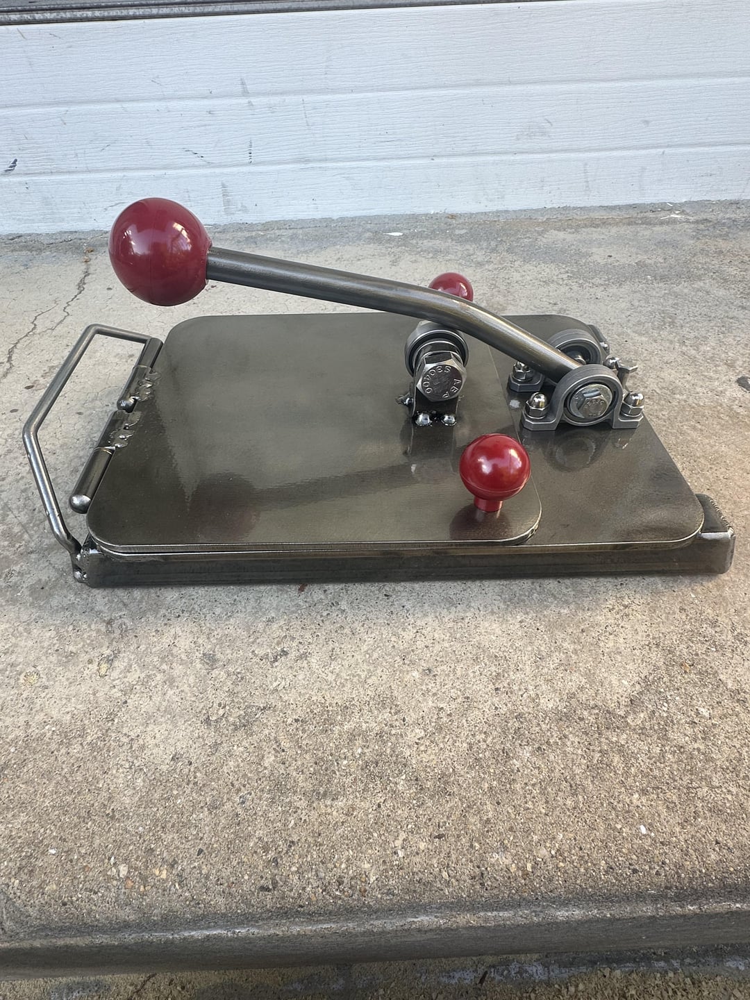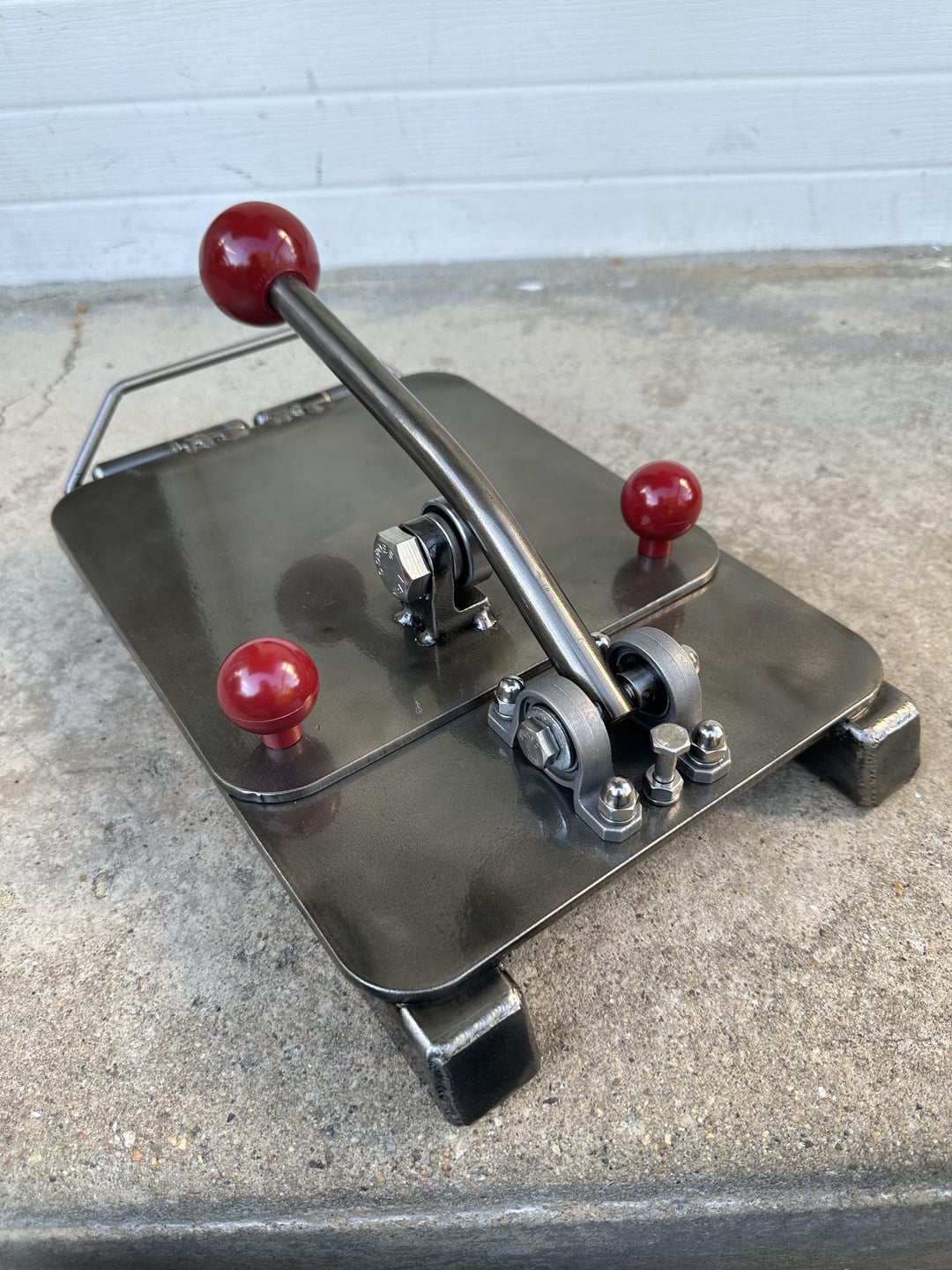 I saw a post earlier about the bad quality of a masienda press and thought i’d share mine. I used ball bearings to prevent metal on metal friction. Its made from 3/16 thick steel than powder coated it to prevent rust.
