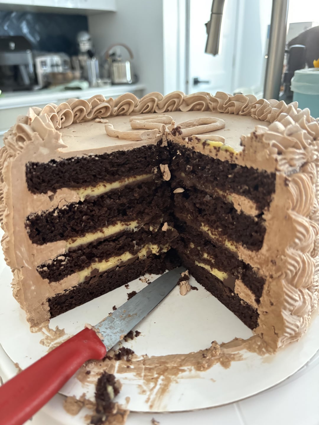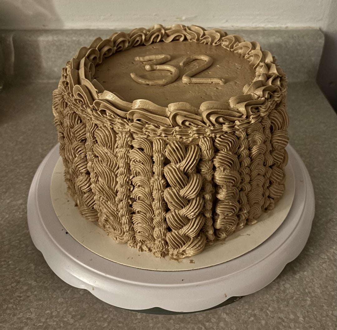 Tried a cable knit sweater design for the annual birthday cake I make my sister. Not perfect but it was super fun to make ☺️ Chocolate Swiss meringue, almond pastry cream, chocolate ganache, gluten free chocolate cake.by Nthmetalwings 3 Comments InfiniteGays 9 months ago I’ve seen crocheted cakes, now cake fiber arts! Any crossover between these is always great Sunflower_Angels 9 months ago The buttercream looks so good, like I already know it’s so silky and smooth!! That cake is beautiful, and looks delicious!! jellybeangirl50 9 months ago Perfect layers, too! Love it.Write A CommentYou must be logged in to post a comment.