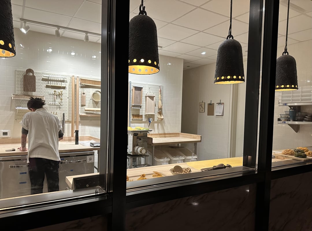 3, 4, & 5 – Tre Dita's interior: the main dining room, the bar, and the pasta-making room.