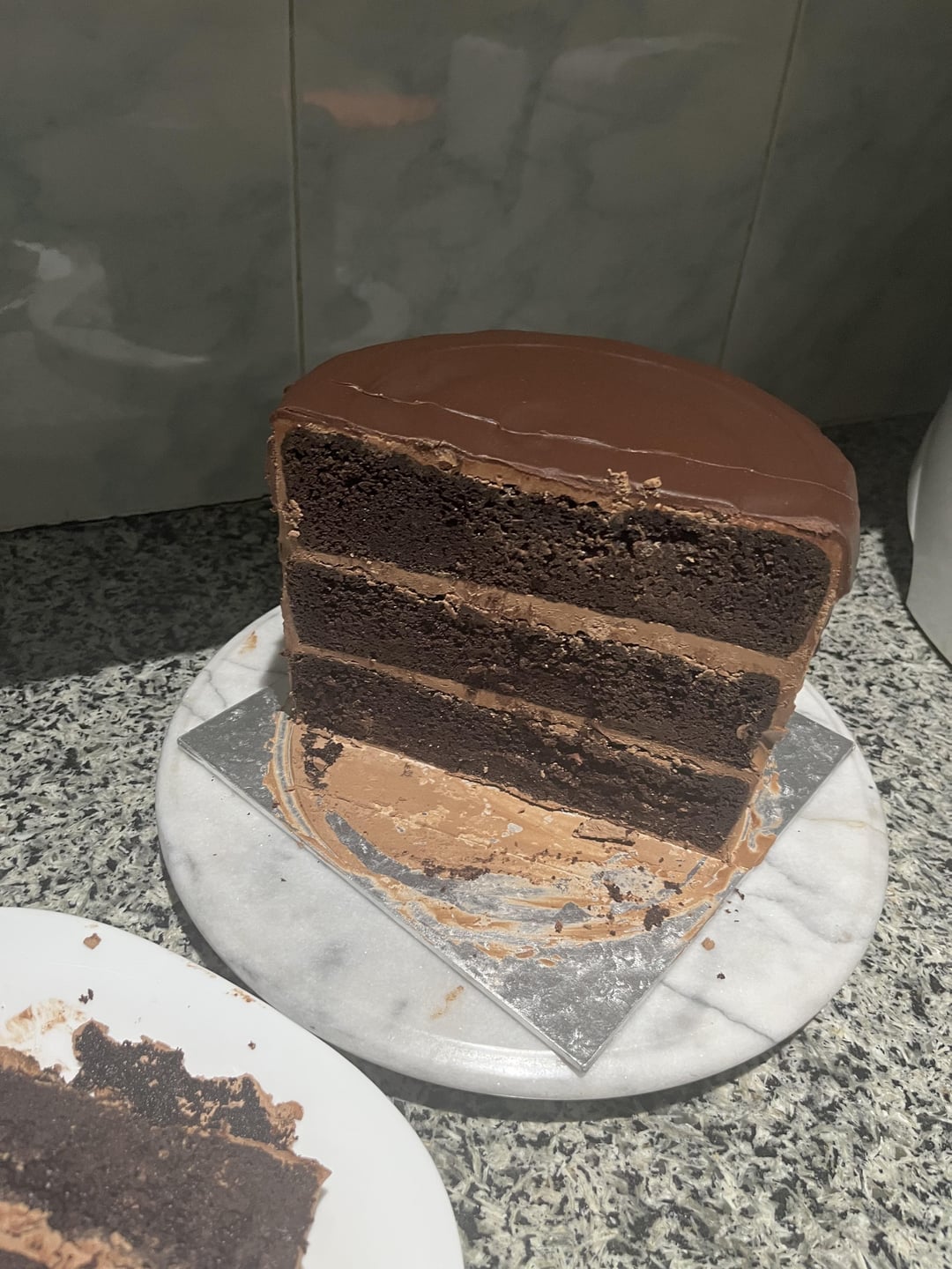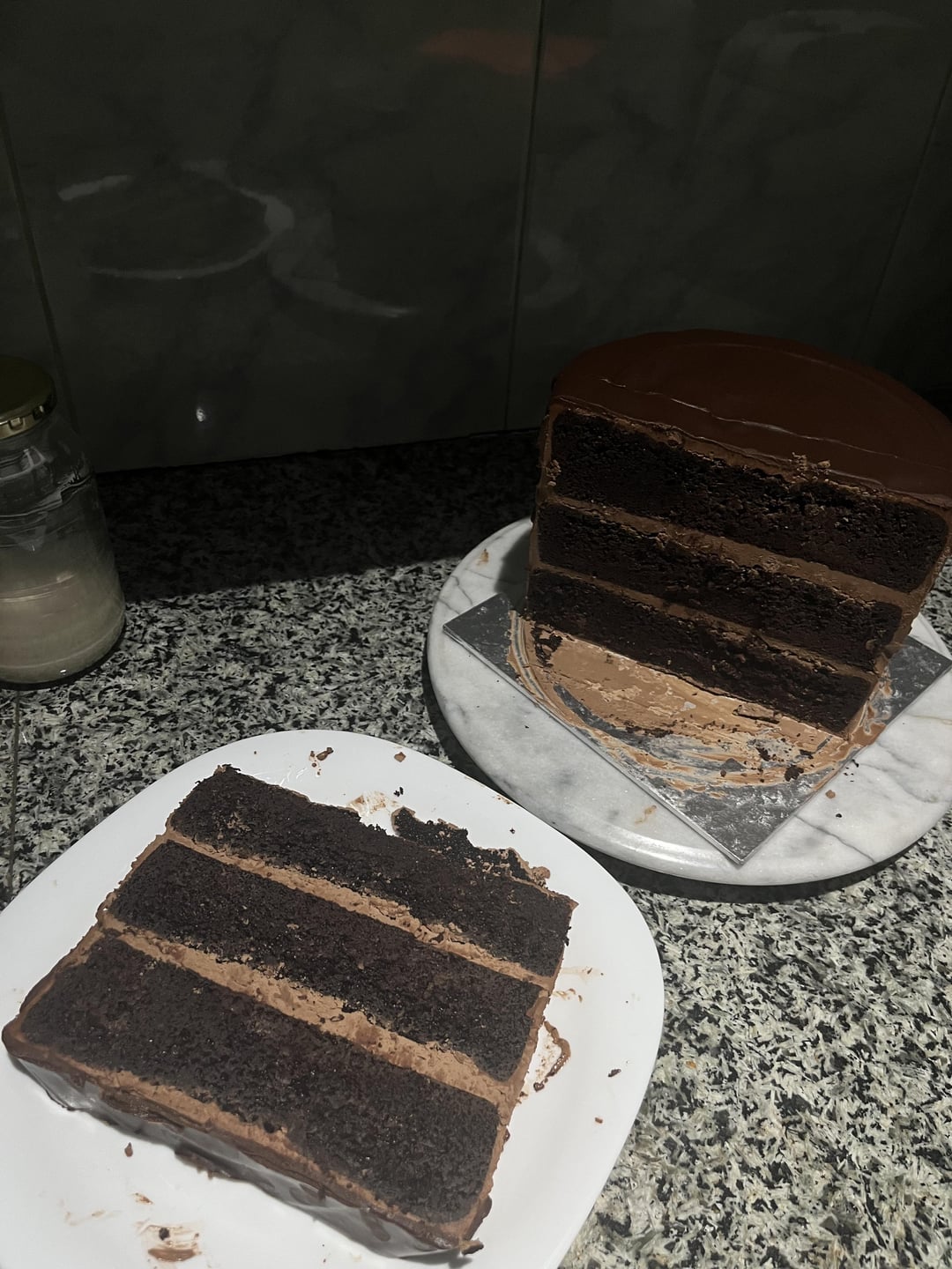 Stella parks devil food cake. Definitely my favourite cake to eat, intense chocolate! I always think of this as a special cake as I don't make it often, but it's so so good everytime. Added a 1:1 chocolate ganache on top, decorating was done in a rush but I think it looks "rustic" lol