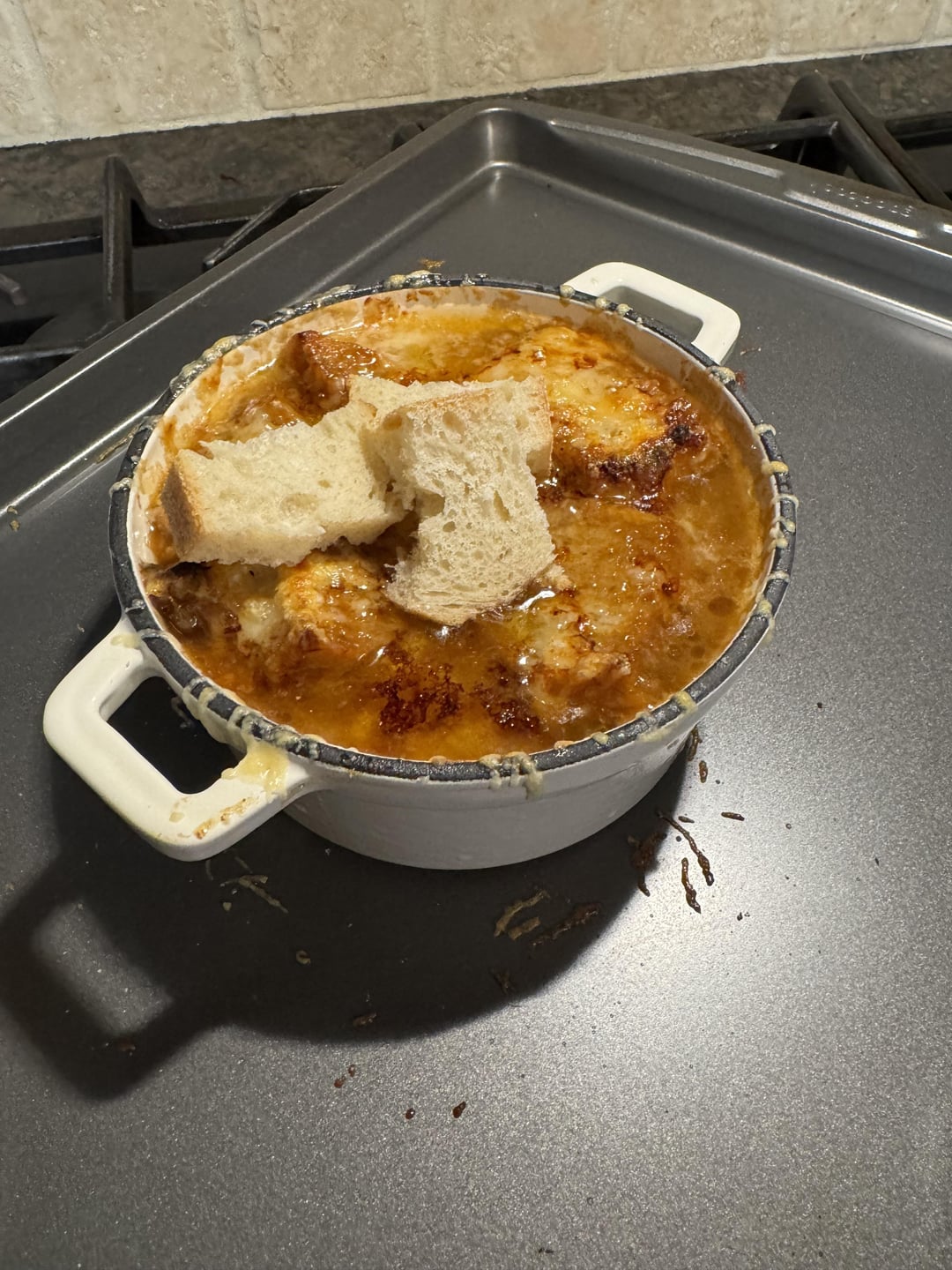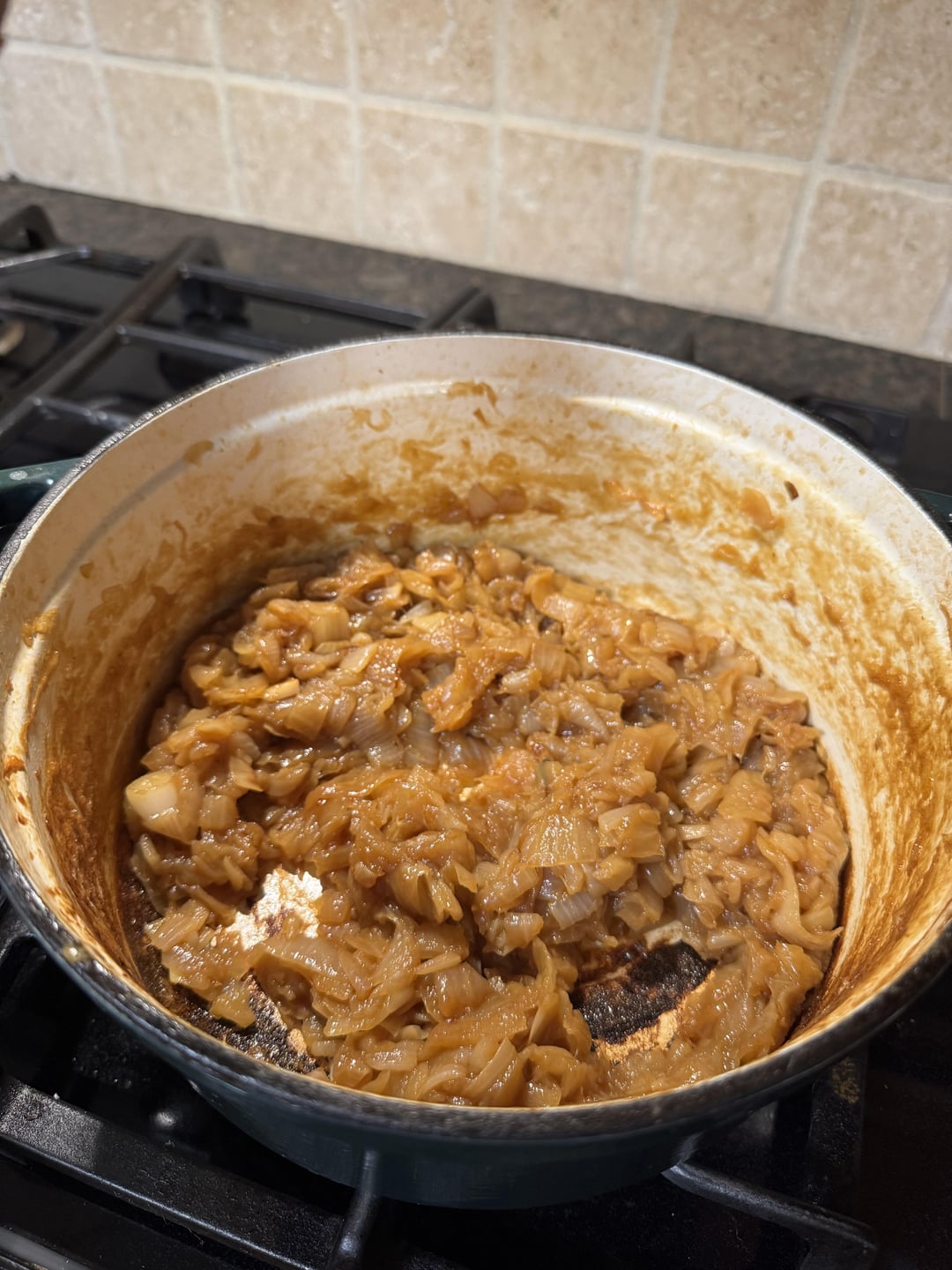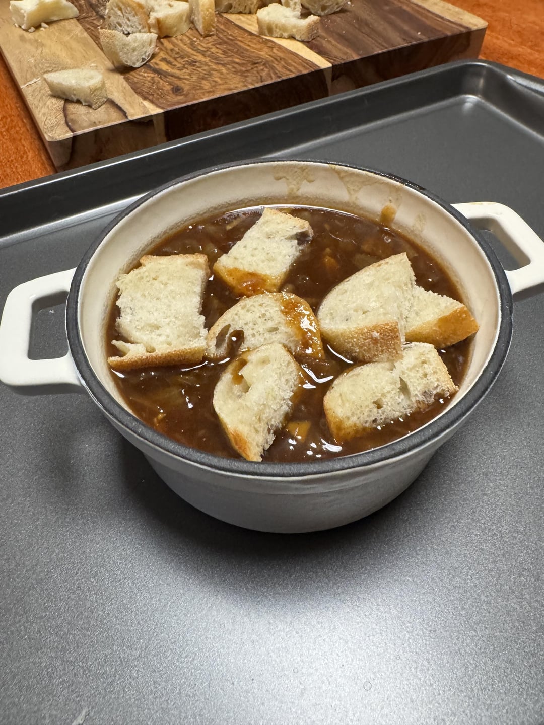 How long did the onions take to get that color? I’ve only tried French onion soup once and I don’t think I let them go long enough. Also what kind of bread did you use? Mine came out soggy, even with toasting them first.
