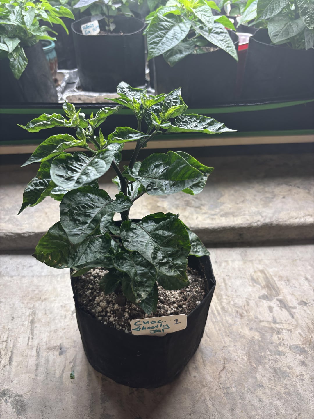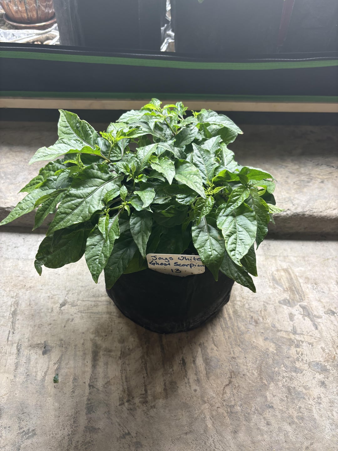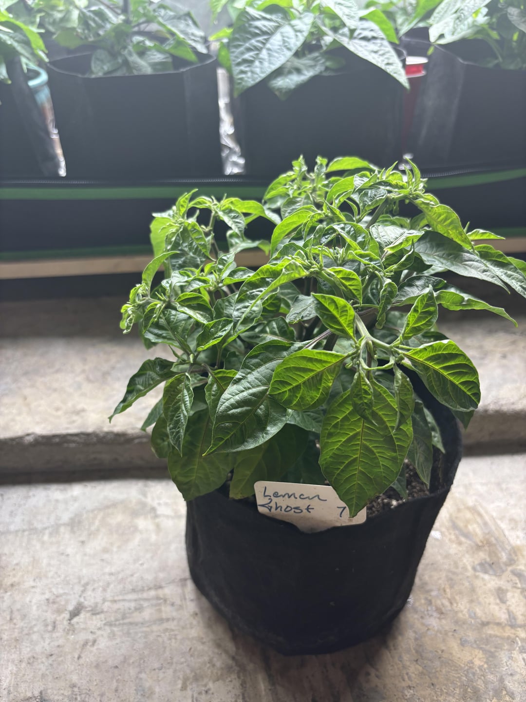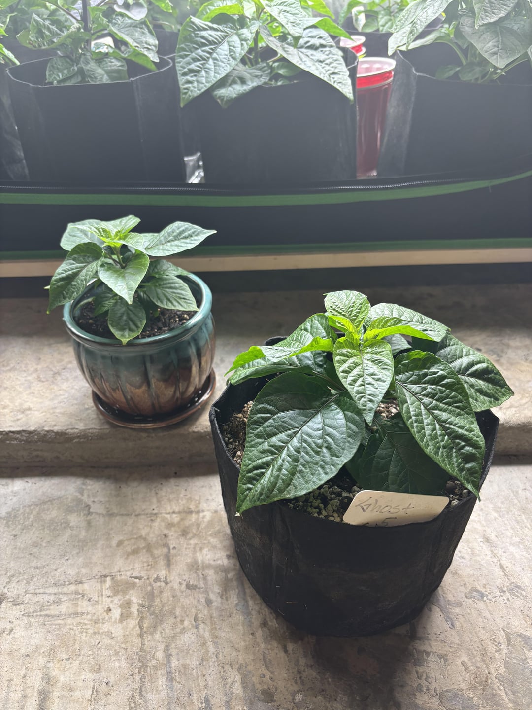 Check out the two ghost peppers… Both pictured together are the exact same age.