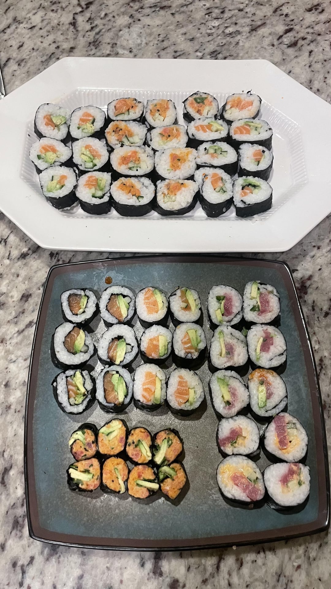second time i’ve every made sushi, and first time actually cutting the fish correctly. pretty proud of this, i wanted yellowtail but my local asian market was out, and fresh market had sashimi on sale for $10/lb.