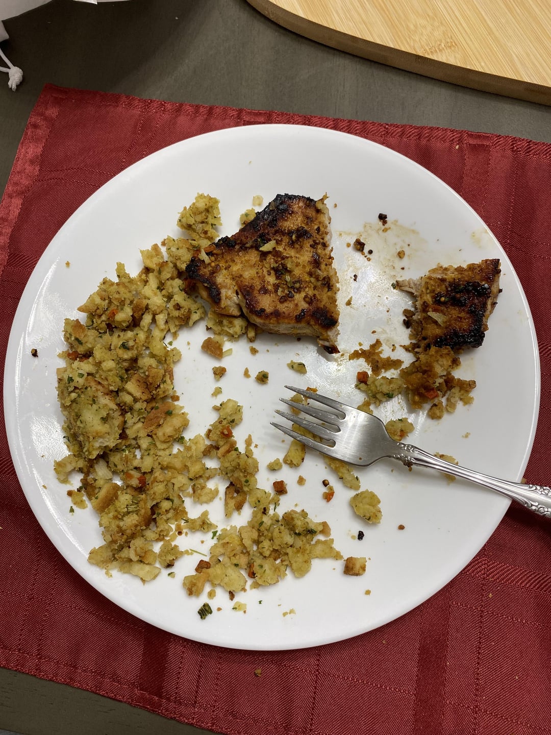 i originally slept through dinner (pork chops and sage stuffing) so i reheated it and really disliked it. about how many calories would it have been? by Cult_Baker 1 Comment stuckatcrabs 1 year ago probably like 600-700 calories would be my guess.Write A CommentYou must be logged in to post a comment.