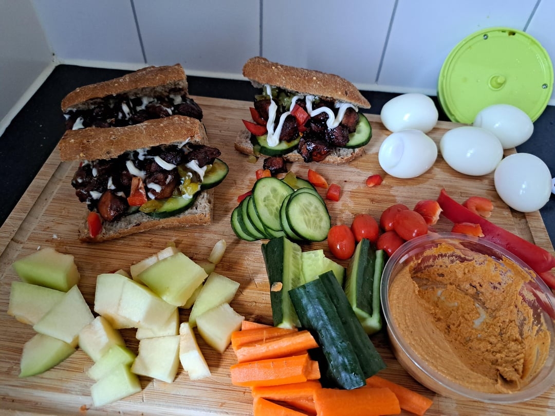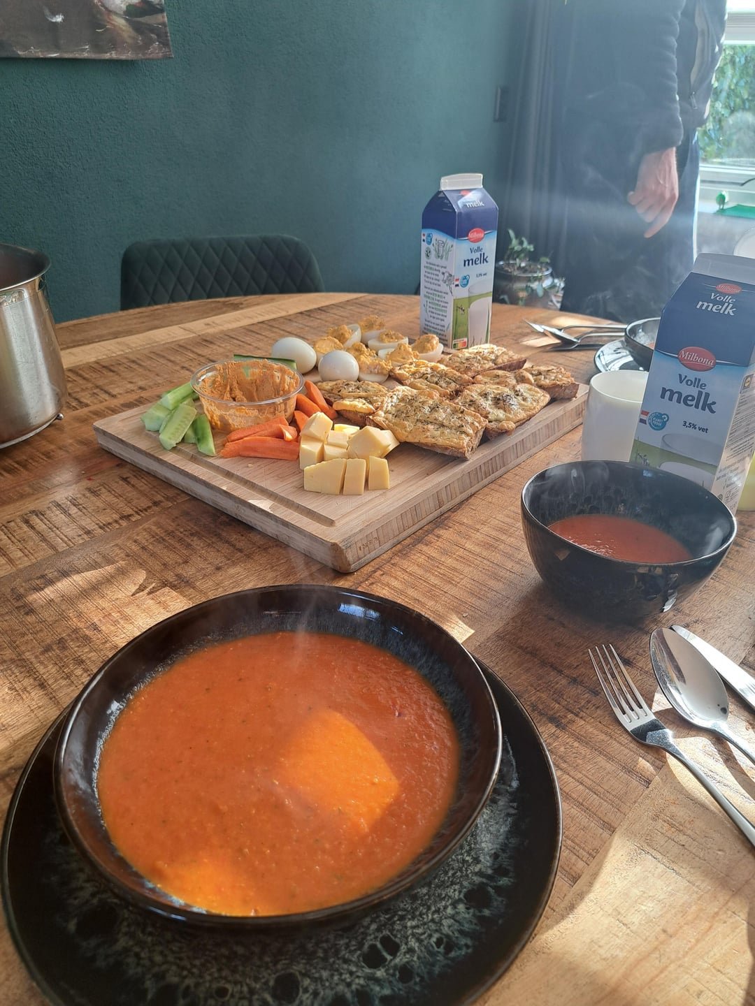 Weekend lunches! Sat: Tom gha kai soup, sticky chicken sandwiches and some bites. Sun: Tomato-paprika soup, bruchetta-like sandwiches, stuffed eggs and some bites