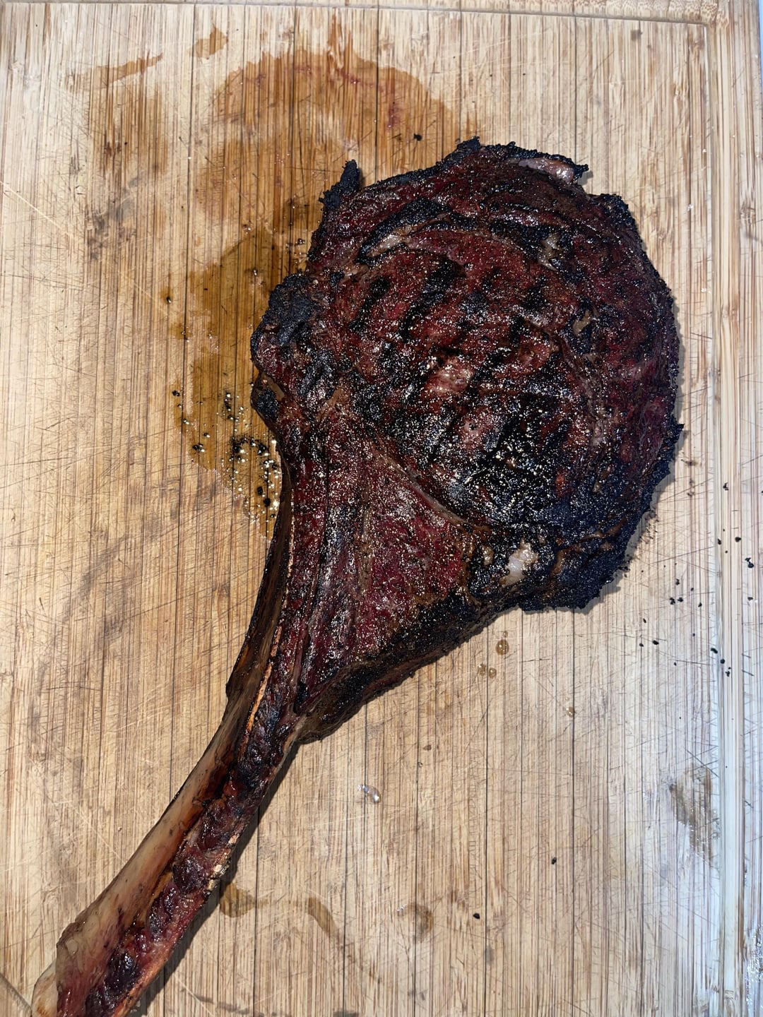 Would definitely dig into that. Not only does the Tomahawk look perfect but that potato and sour cream looks delicious.