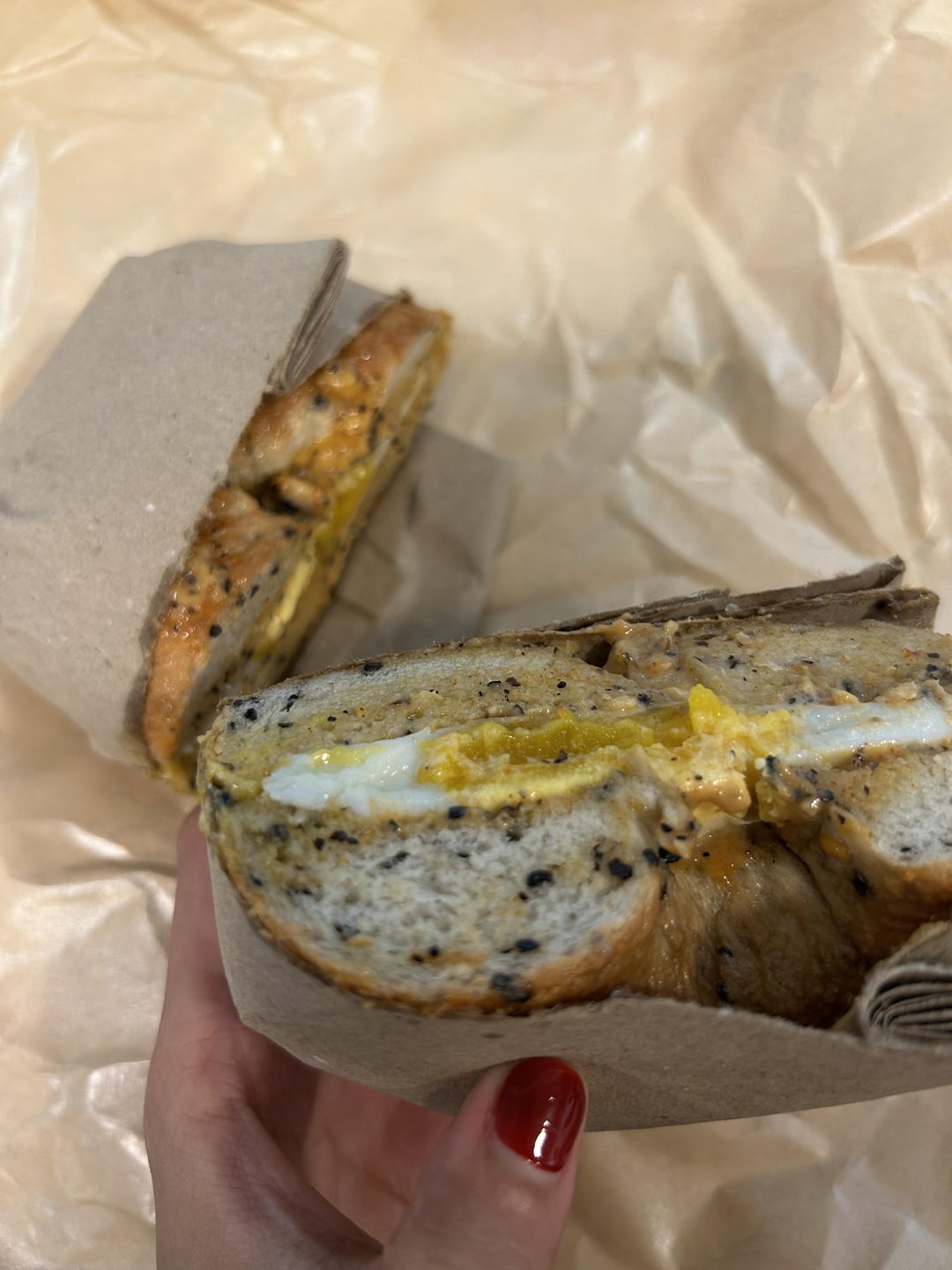 Hi all! This build your own bagel has a sesame bagel, garlic aioli and a sunny side up. Approximate cals? by krispyearthquake 1 Comment Fresh-Flatworm-1853 1 year ago 400-500Write A CommentYou must be logged in to post a comment.
