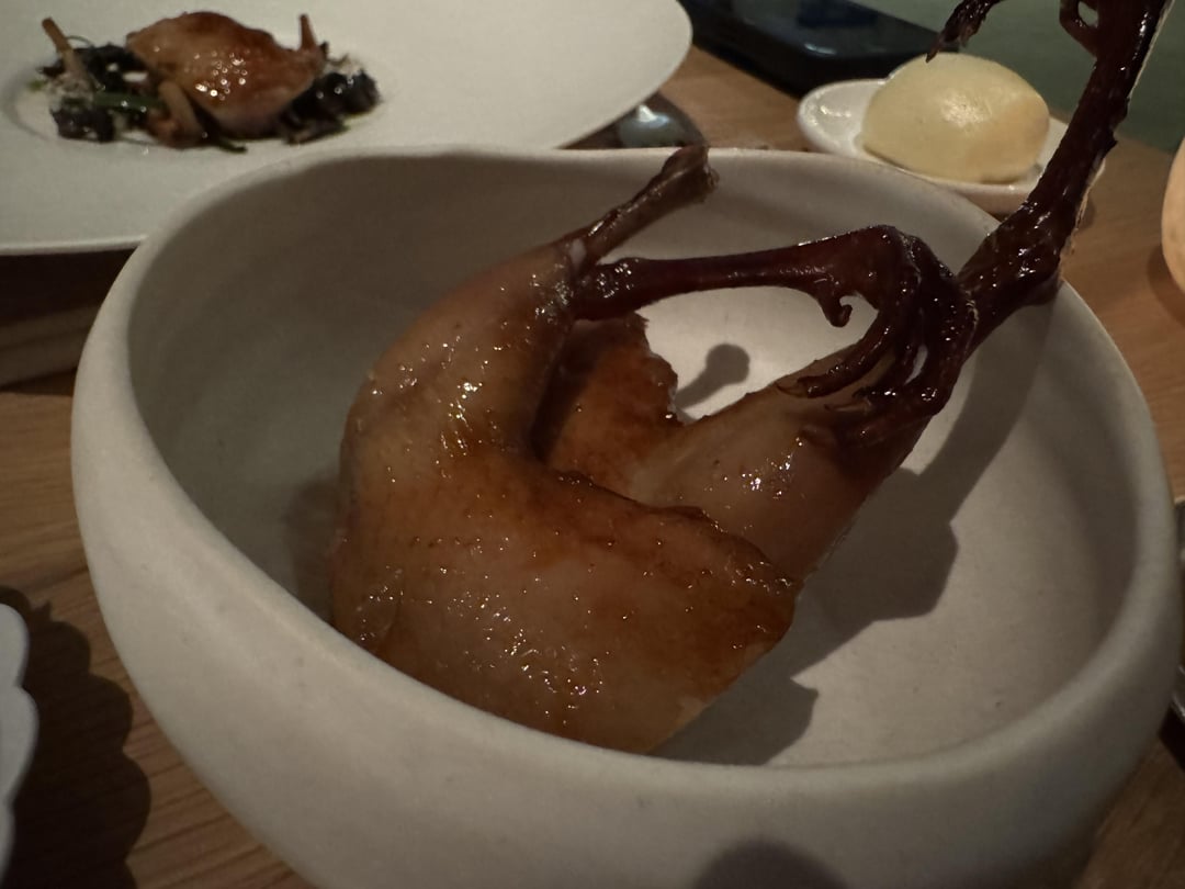 **General:** the best quail I’ve ever eaten. Small bites were incredible and the single-add on of the donut w/ham and caviar was absolutely worth it (not quite up to Compartir/Disfrutar’s version though). The custard was also fantastic.