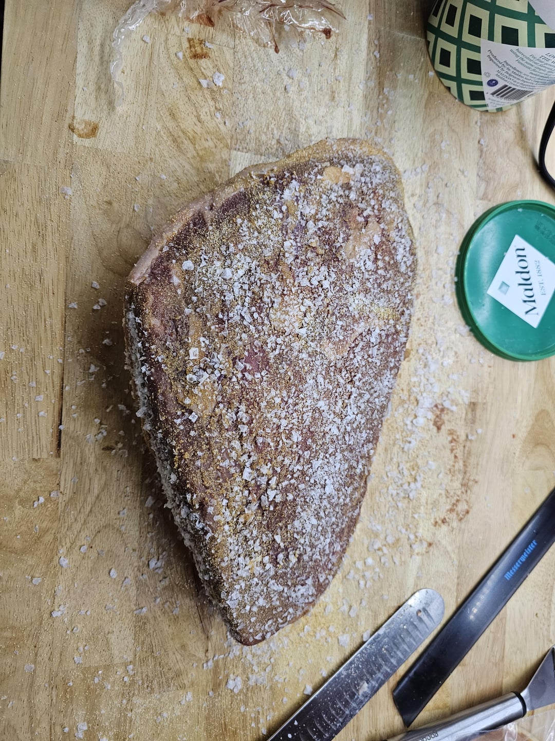 Picanha scored, salt/pepper/msg/garlic powder/onion powder, sous vide @131 for 6 hours, patted dried then air fried for 15 minutes, sliced thin.Tastes great!by con_work Write A CommentYou must be logged in to post a comment.