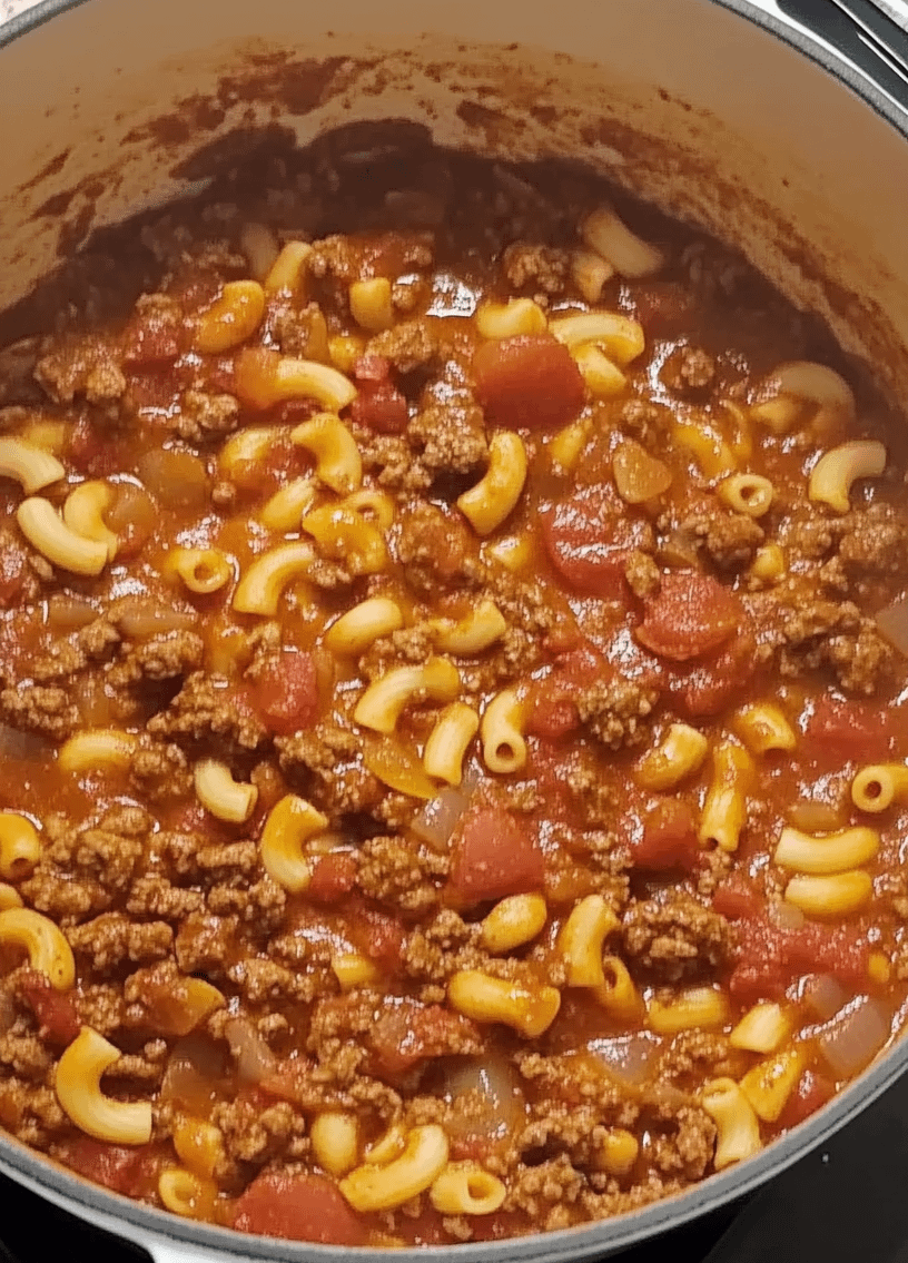 1. **Cook beef & onions** – Brown the ground beef and onion in a large pot over medium heat. Drain excess fat.