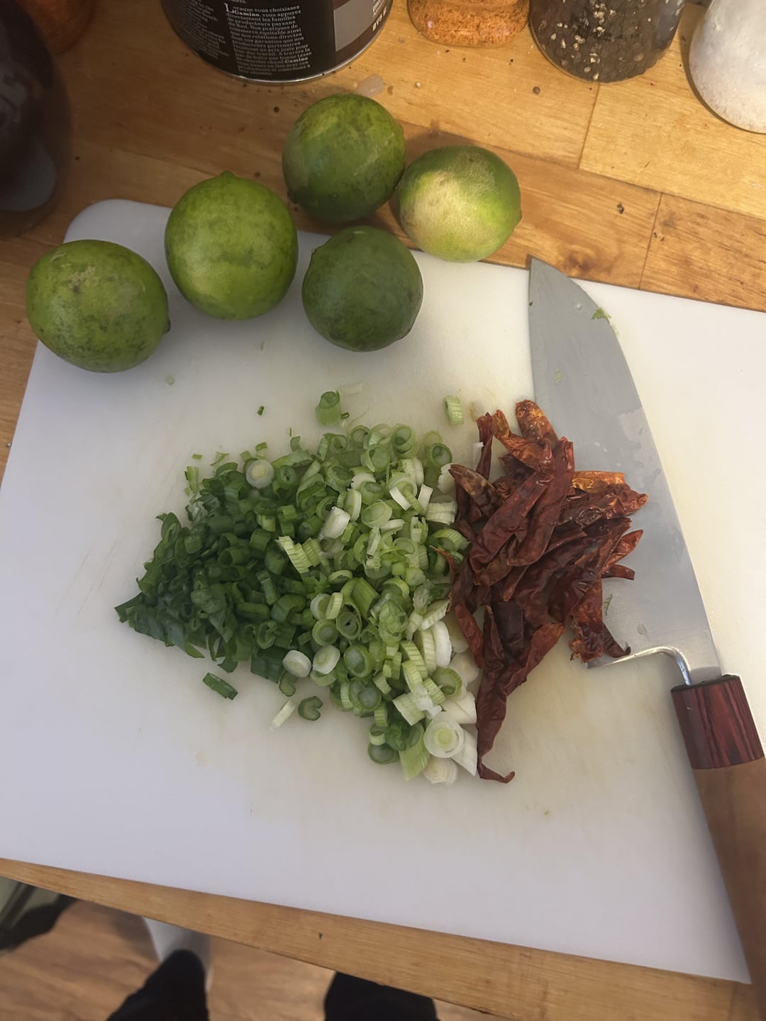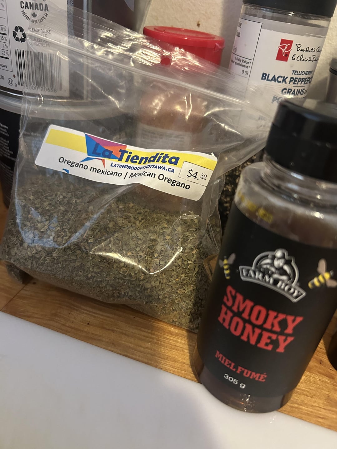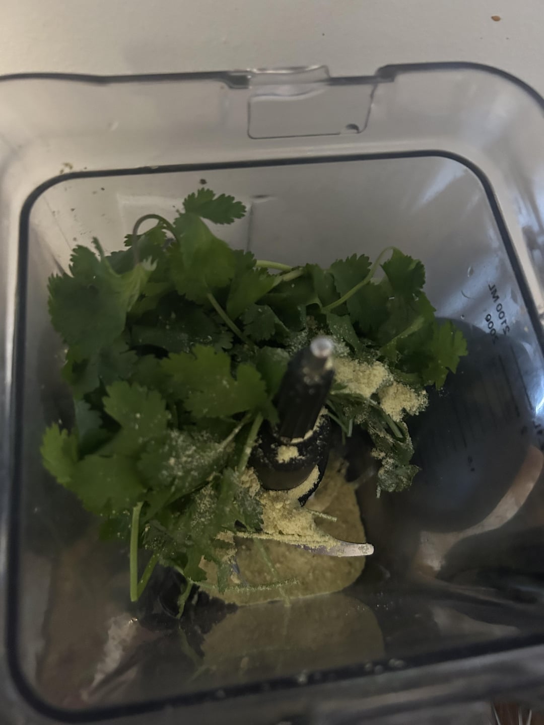 I blended them all together with the lime juice, a touch of Mexican oregano, the chicken bouillon, cilantro, chile de arbol, a good squeeze of smoked honey and salt.