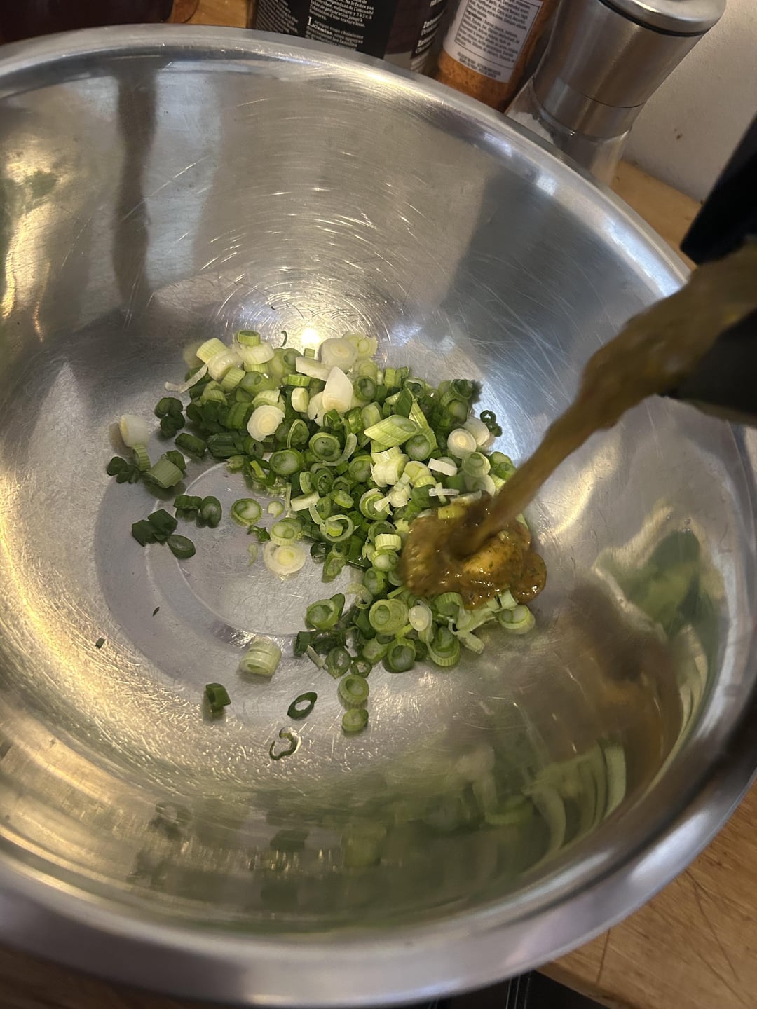 I poured the blended salsa on top of a bunch of chopped green onions as I love the texture and flavour of them raw.