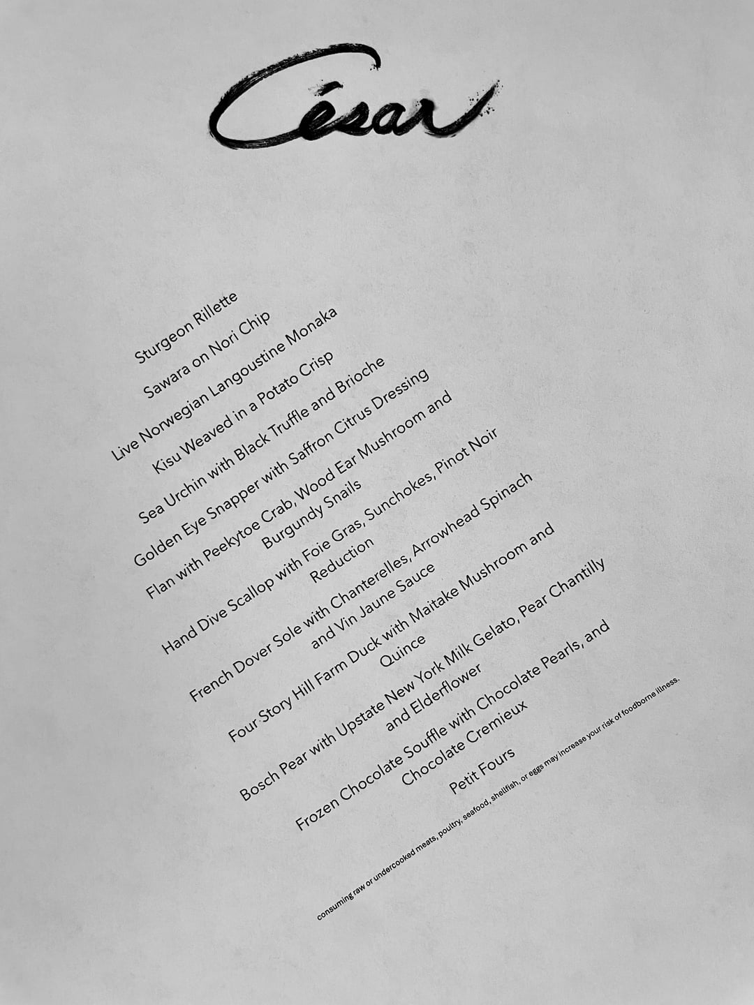 The next evening we went to César. And even though there were some issues front and center in the kitchen, I have to say that Chef César has truly outdone himself to prove that he is deserving of opening and running his own namesake.
