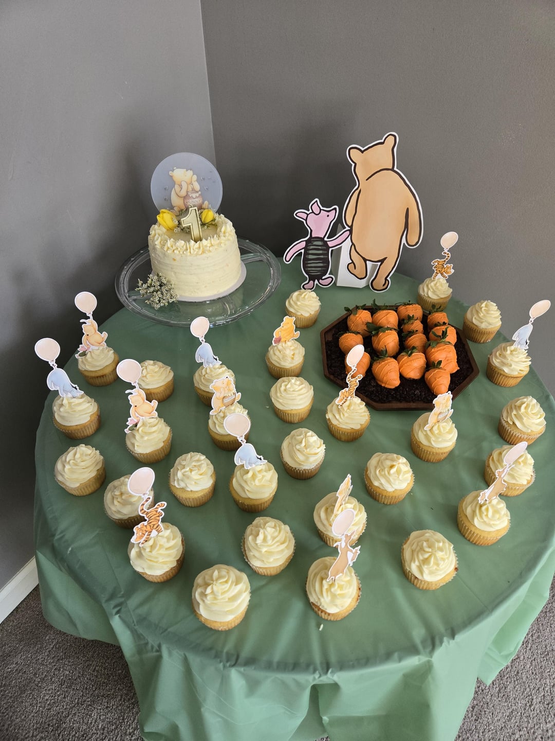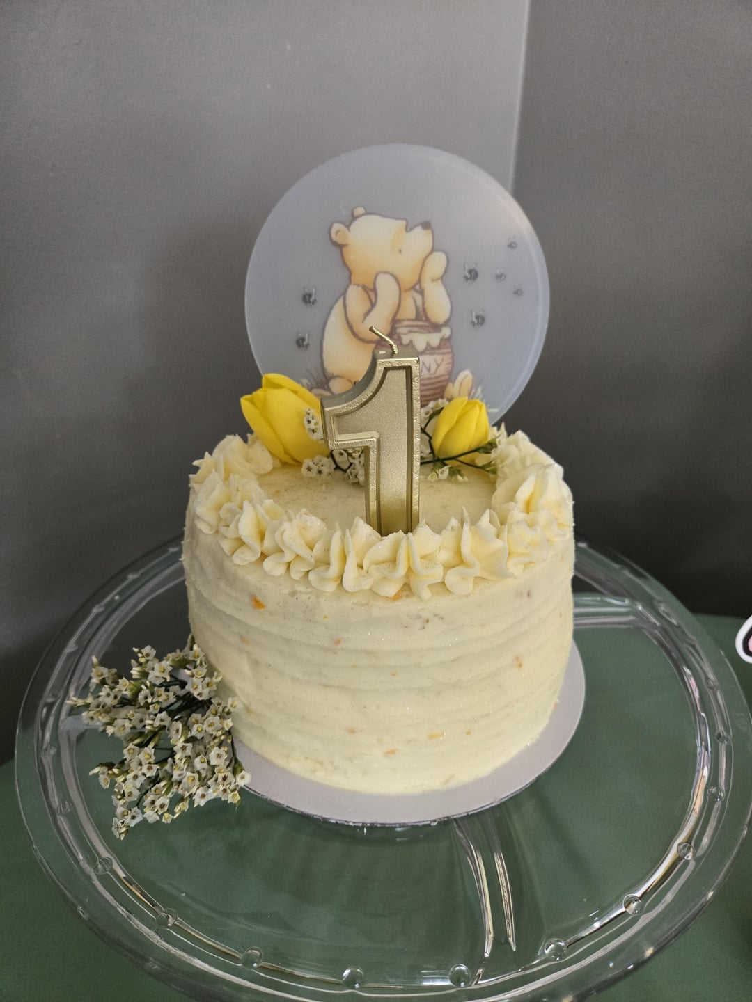Oh my goodness this is lovely! I may have to take inspiration from her for my daughter’s 1st bday because I love to bake and my husband’s name is Christopher and mine is Robyn so the sort of cute joke is that our baby is Pooh bear. 🌸 Such pretty cakes!