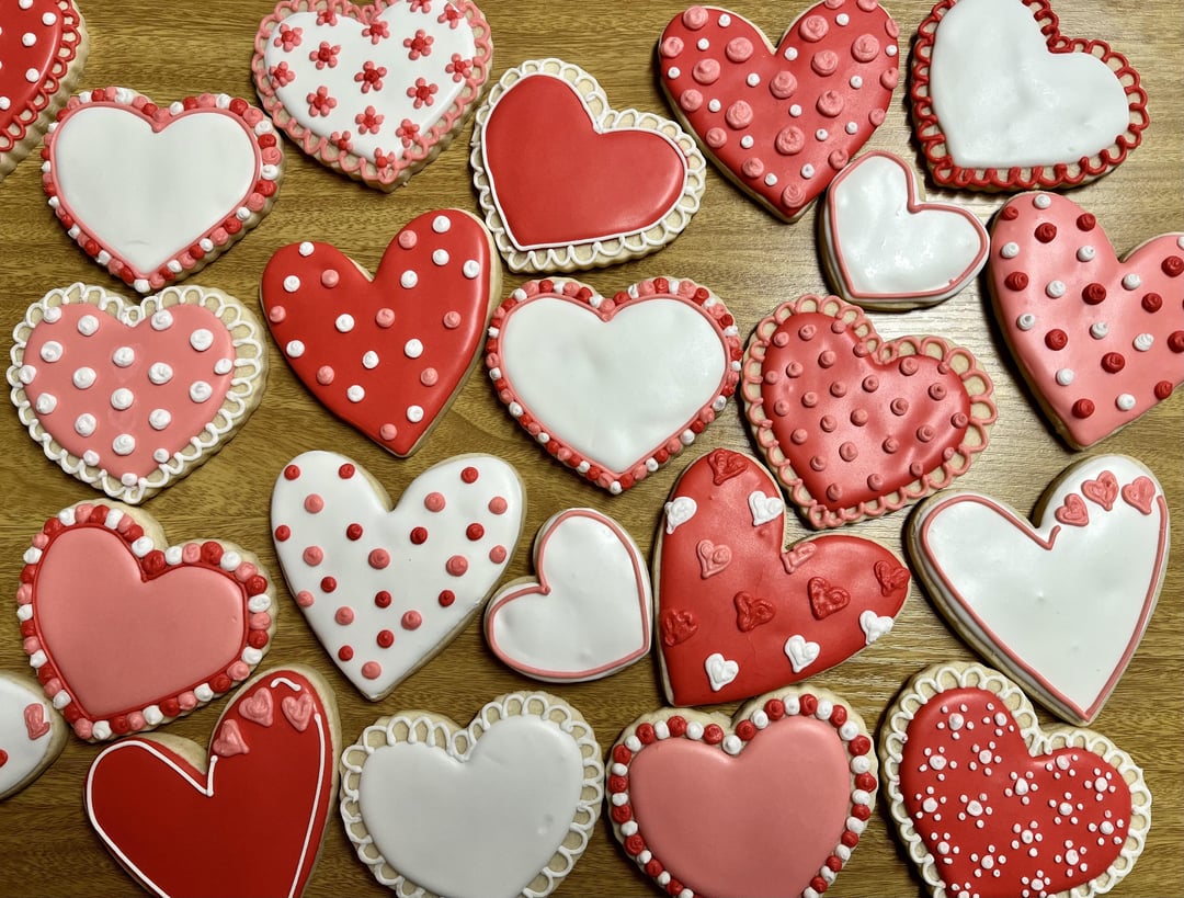 Just wanted to share my Valentine’s Day cookies! I haven’t done a presale since last Easter ( due to pregnancy and having a newborn). I marketed these as “variety” dozen and had so much fun decorating however I wanted. I’m counting 2 small cookies as 1 in each set sold