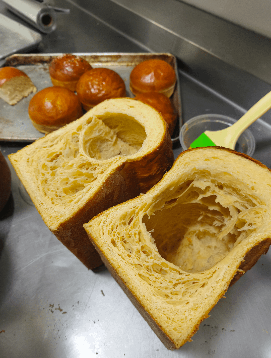 Hi. I'm Alan, I'm a pastry cheff in a restaurant y Mexico City. I don't know much about bread so thats why I'm asking for your advice. The other day I Made these Brioche loafs and today I realized they where like sinking, so I cut them all and this is what I found. They were all hollow on they inside!!! Do you have any idea why this happend? 😱