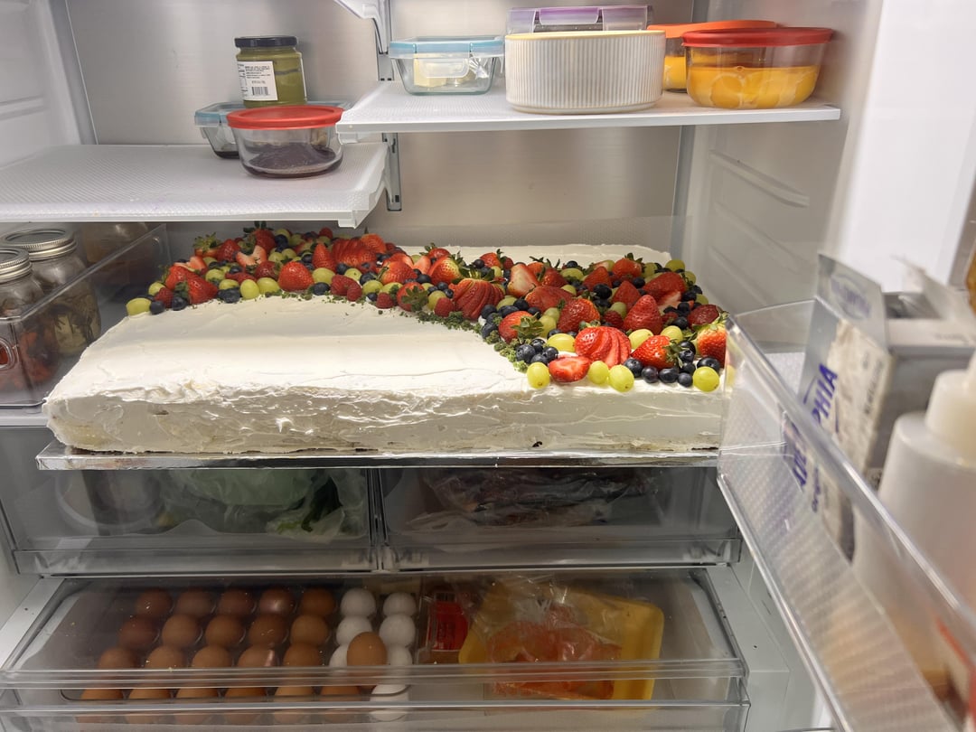 Only after we measure out the ingredients and start pouring them into the trays do we think, “Well, gonna have to clear up some fridge space; it needs to chill up,” and we end up having to remove half the fridge to accommodate the number of baked goods we’ve made…